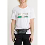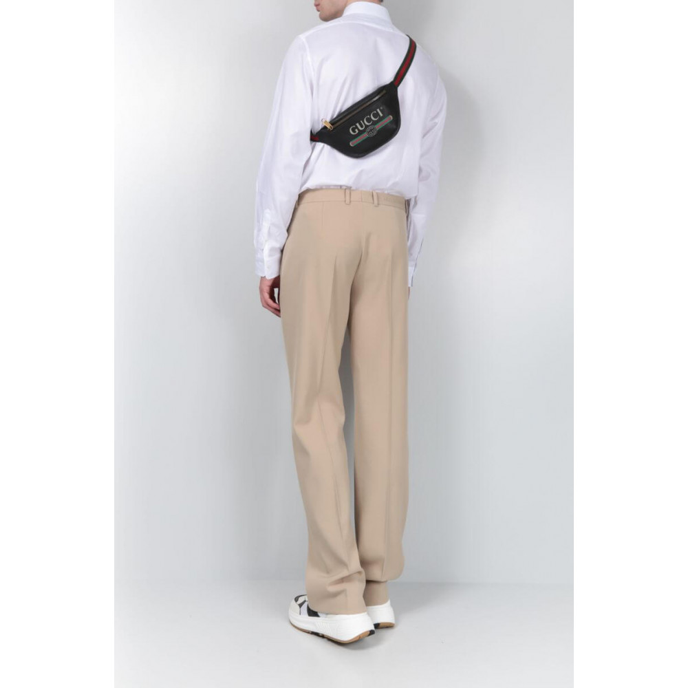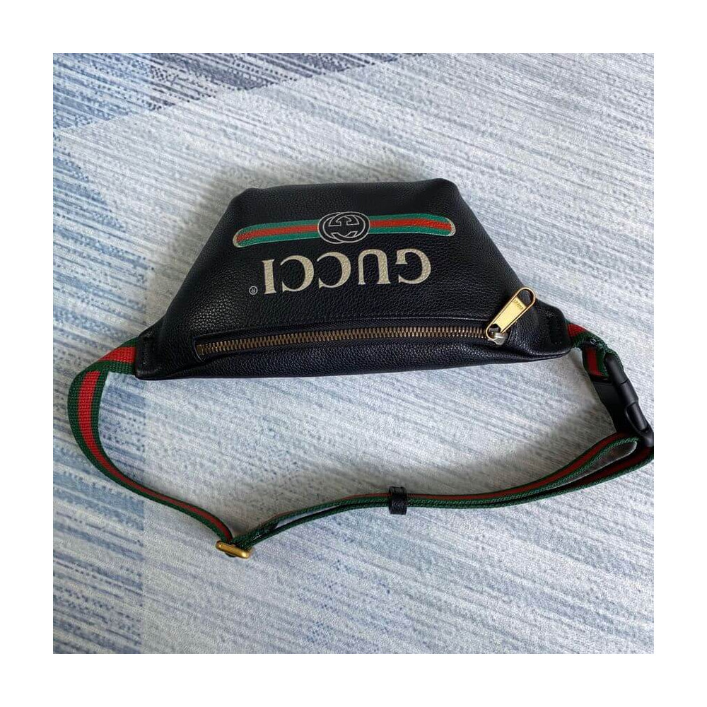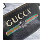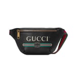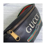 Inspired by vintage prints from the eighties, the Gucci logo is brought to the forefront. The retro-style motif is presented on the front of a belt bag in supple, textured leather.
