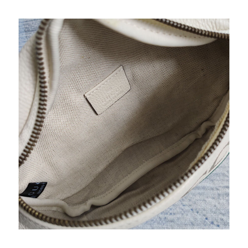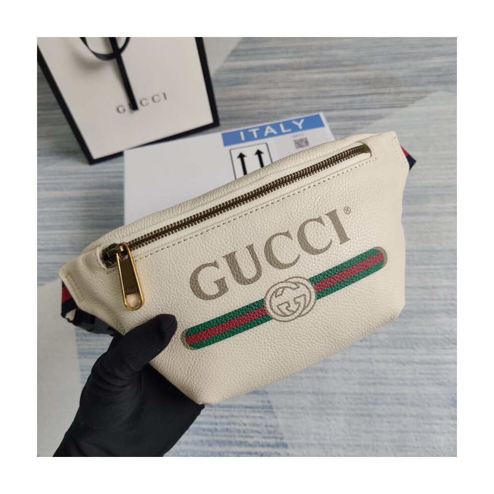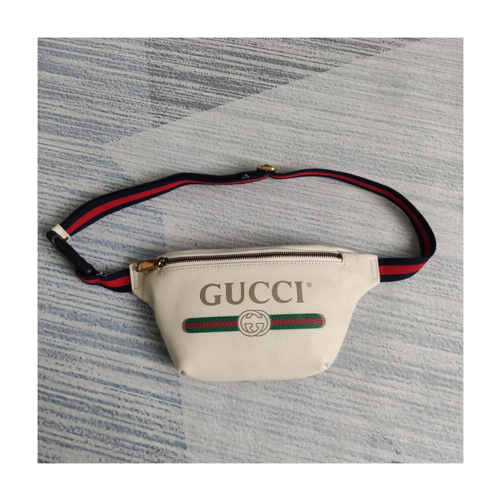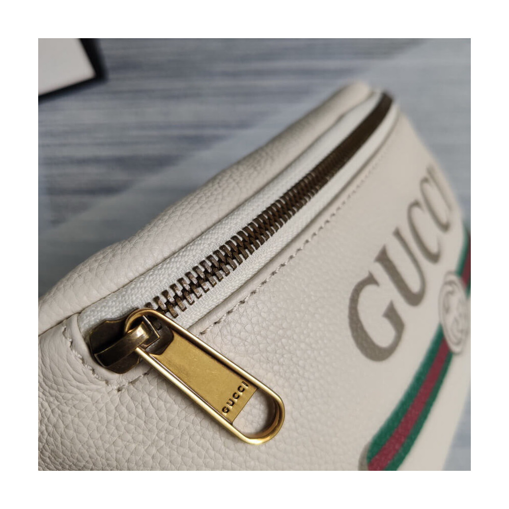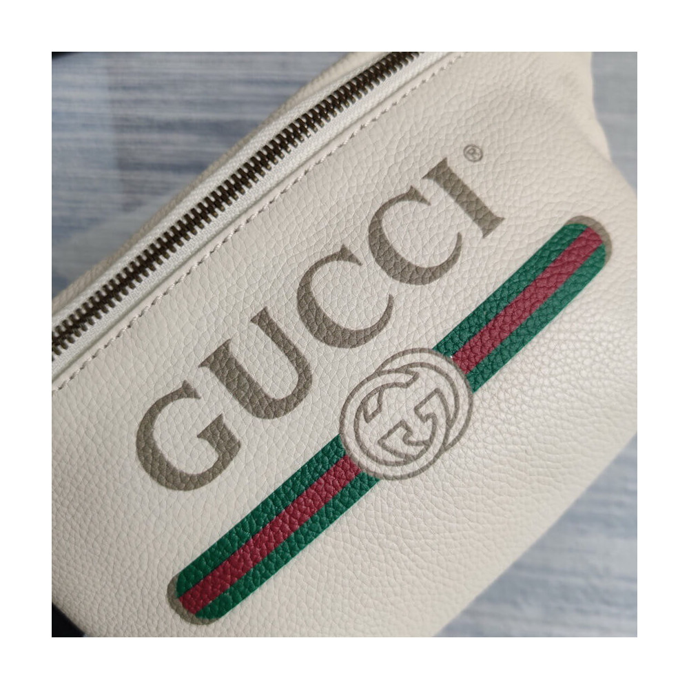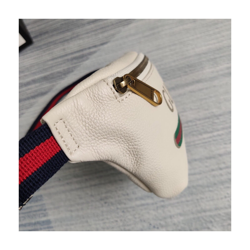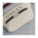 Inspired by vintage prints from the eighties, the Gucci logo is brought to the forefront. The retro-style motif is presented on the front of a belt bag in supple, textured leather.