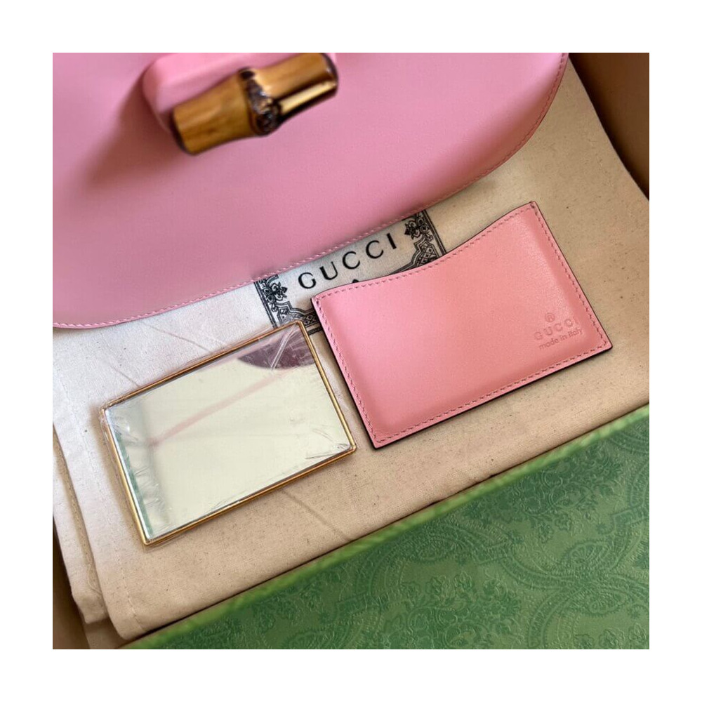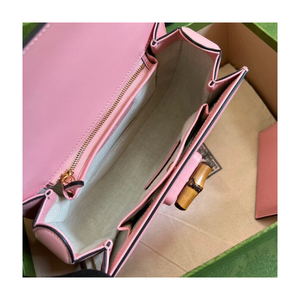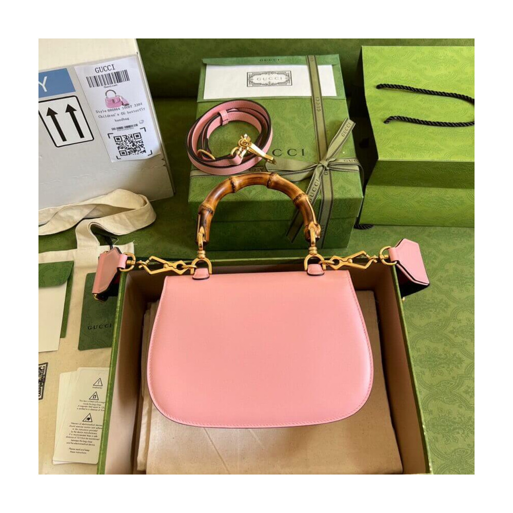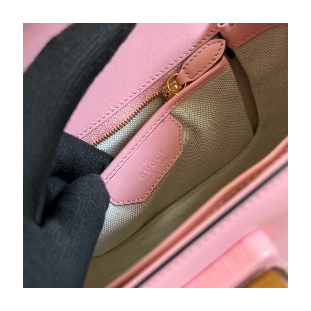 A material that speaks to the long-lasting traditions that come together to create Gucci’s heritage, this bag’s bamboo handles are expertly curved using a flame―a process originally conceived by Florentine artisans during the postwar period. The pink leather style is enriched by a detachable Web strap that allows the accessory to be worn on the shoulder or as a top handle. Versatile designs appear throughout The Gucci Aria collection enriching styles with multiple ways to wear so that they can be worn again and again, creating timeless pieces.