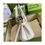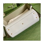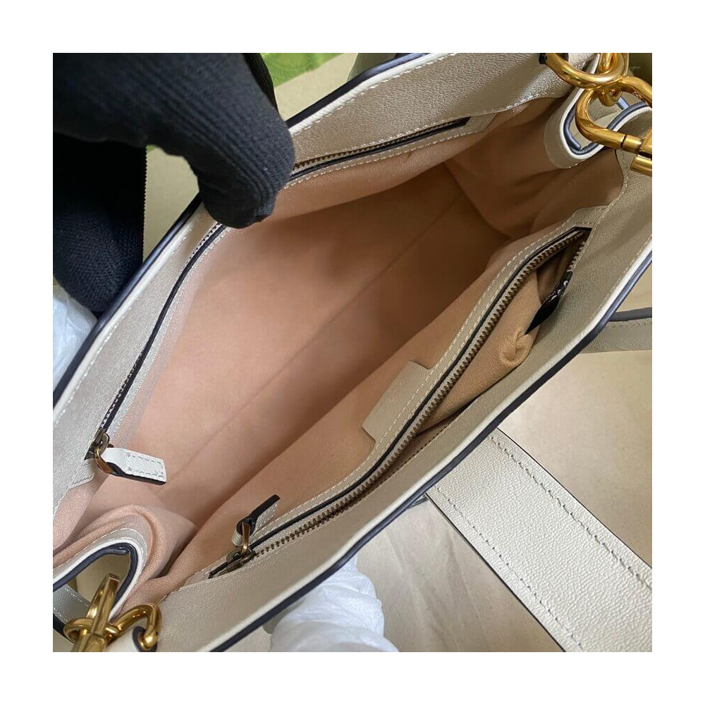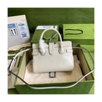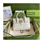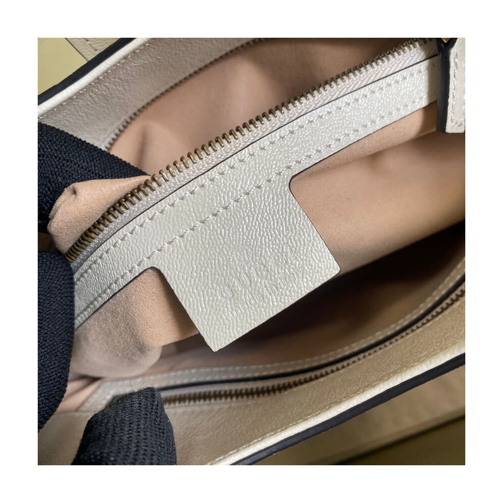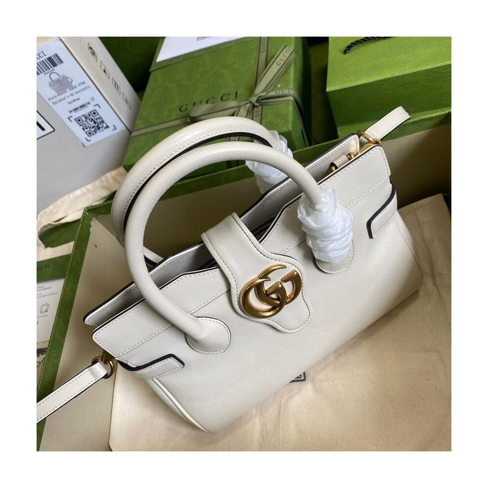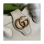 Taken from the ’70s archives, the Double G recalls one of the heydays of the House. The hardware first appeared as a monogram belt buckle but has evolved into one of the brand’s most emblematic codes. Here, the gold-toned detail defines a top handle bag in black leather. A detachable shoulder strap adds a versatile note to the style.