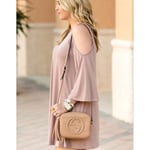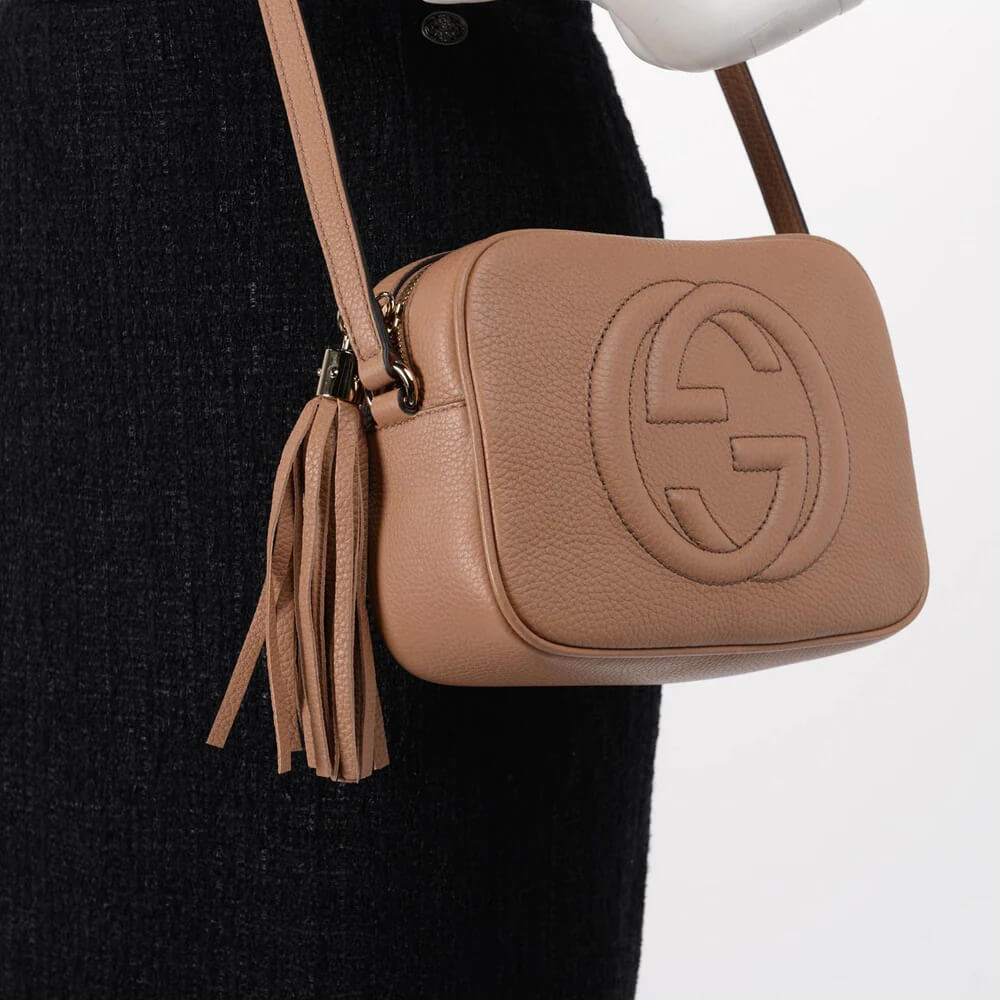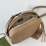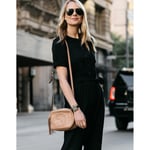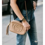 A compact shoulder bag with a leather tassel zipper pull. Sized to fit the necessities. Made in our light, natural grain leather.