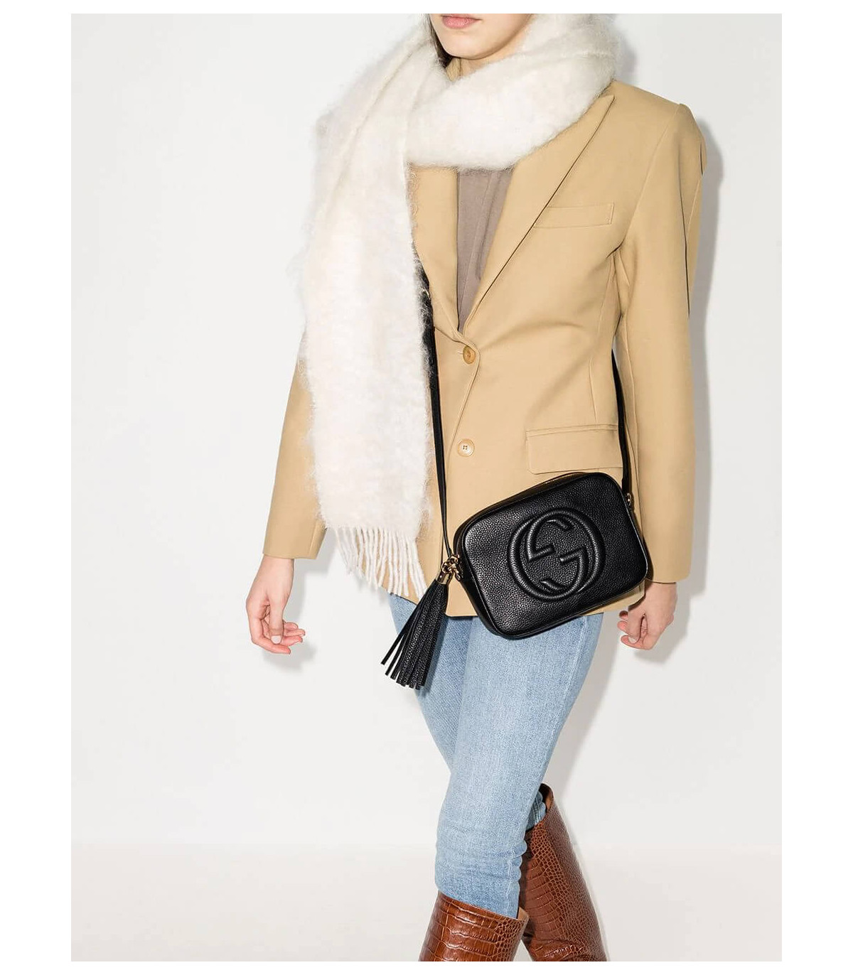 A compact shoulder bag with a leather tassel zipper pull. Sized to fit the necessities. Made in our light, natural grain leather.