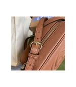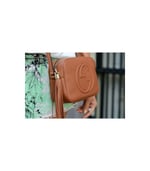 A compact shoulder bag with a leather tassel zipper pull. Sized to fit the necessities. Made in our light, natural grain leather.