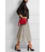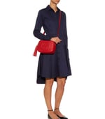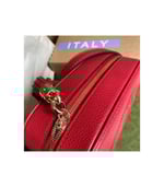 A compact shoulder bag with a leather tassel zipper pull. Sized to fit the necessities. Made in our light, natural grain leather.