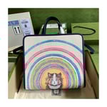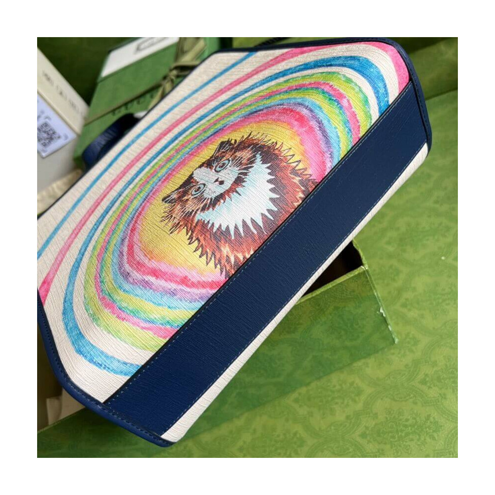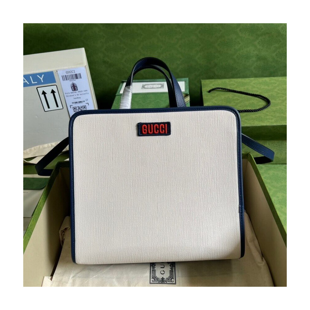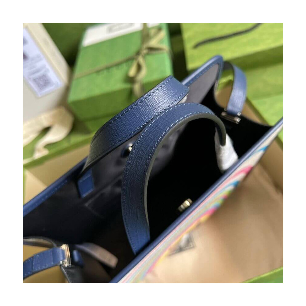 Well known for his drawings of cats and kittens, this colorful children’s tote bag is characterized by a print inspired by the works of British illustrator Louis Wain. The style pairs the name of the House with a playful cat design featuring geometric shapes.