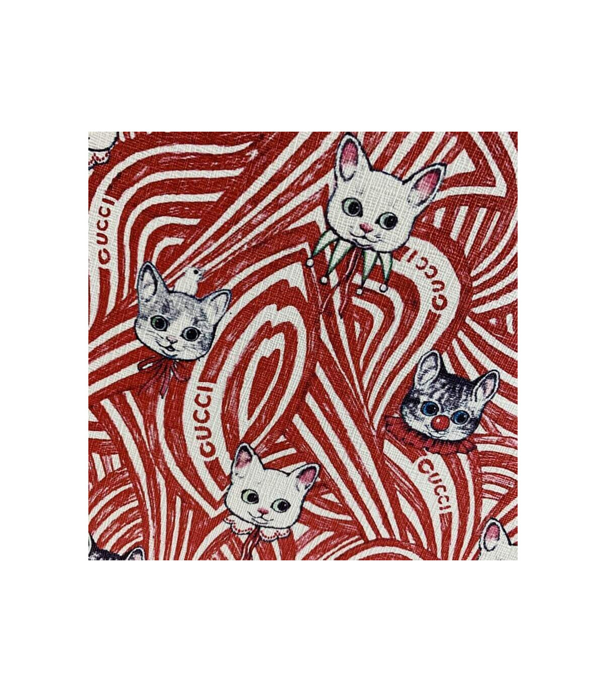 �C Red and white Supreme canvas with cat print by Japanese artist Yuko Higuchi, a material with low environmental impact