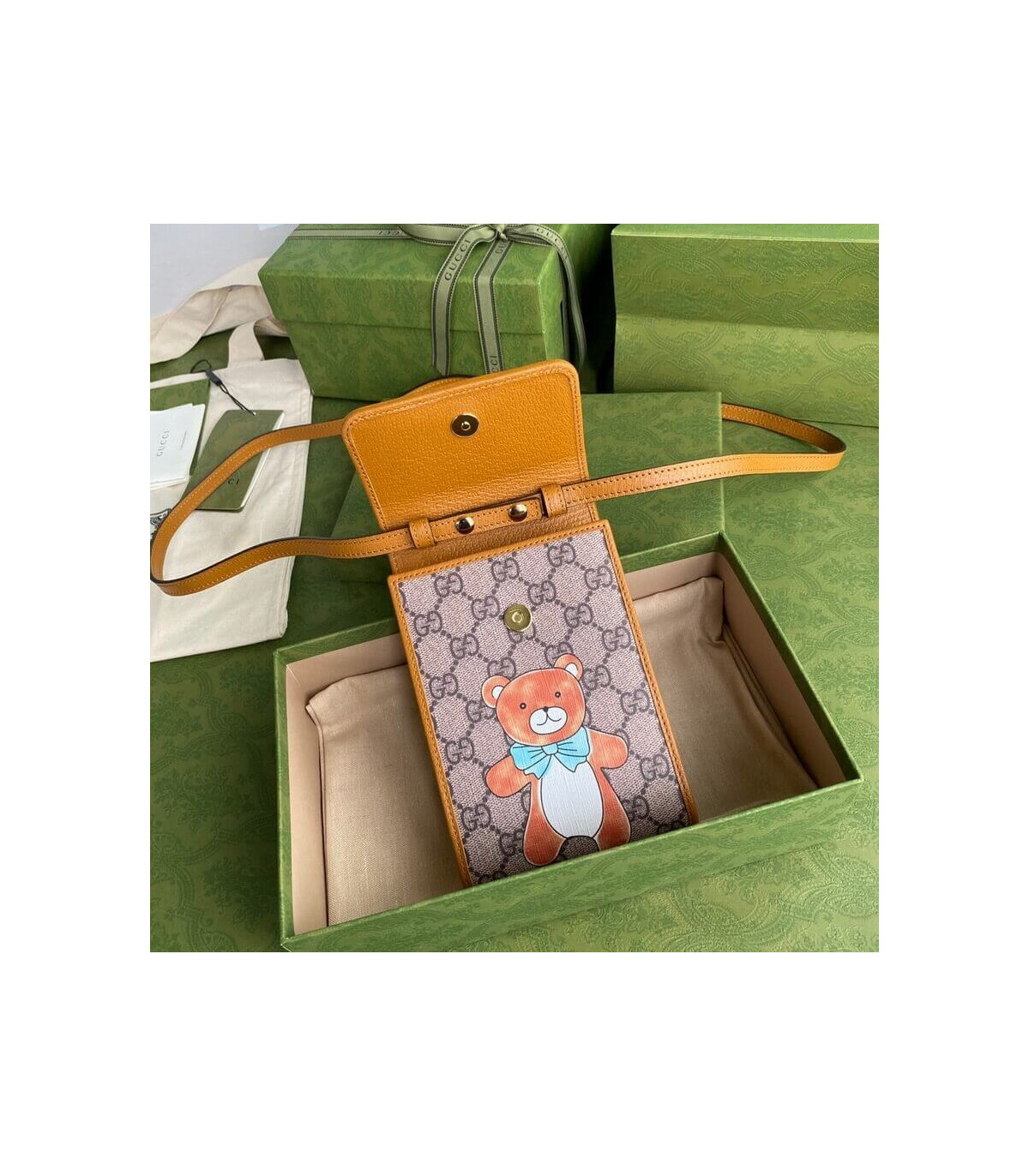 K-pop singer, performer and actor Kai inspires a line-up of ready-to-wear and accessories. His favorite animal, the teddy bear, mixes a strong association with pop culture and vintage influences for a whimsical design. This mini shoulder bag is presented as a part of the special collection.