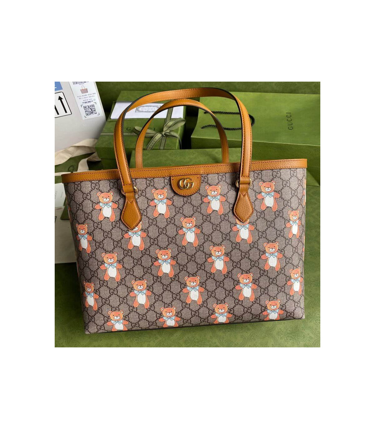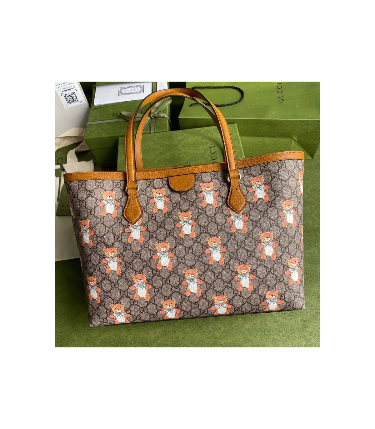 �C Beige and ebony GG Supreme canvas with teddy bear print