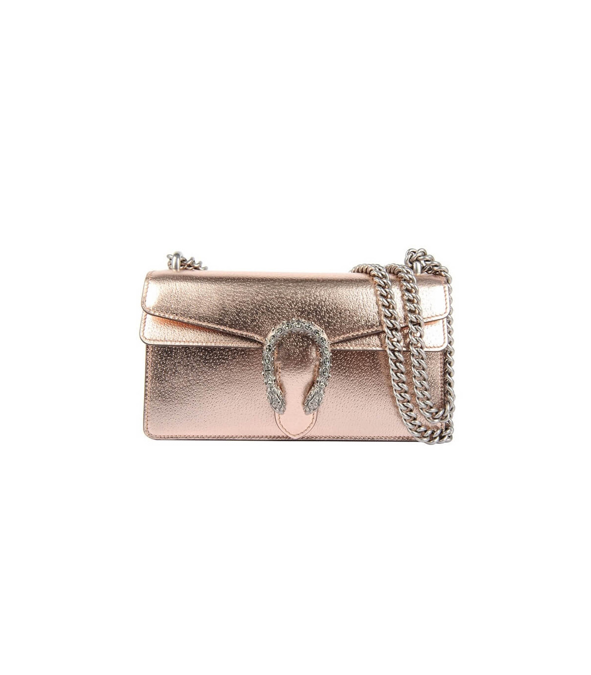 Gucci Dionysus Small Shoulder Bag in Rose Gold Lame Leather