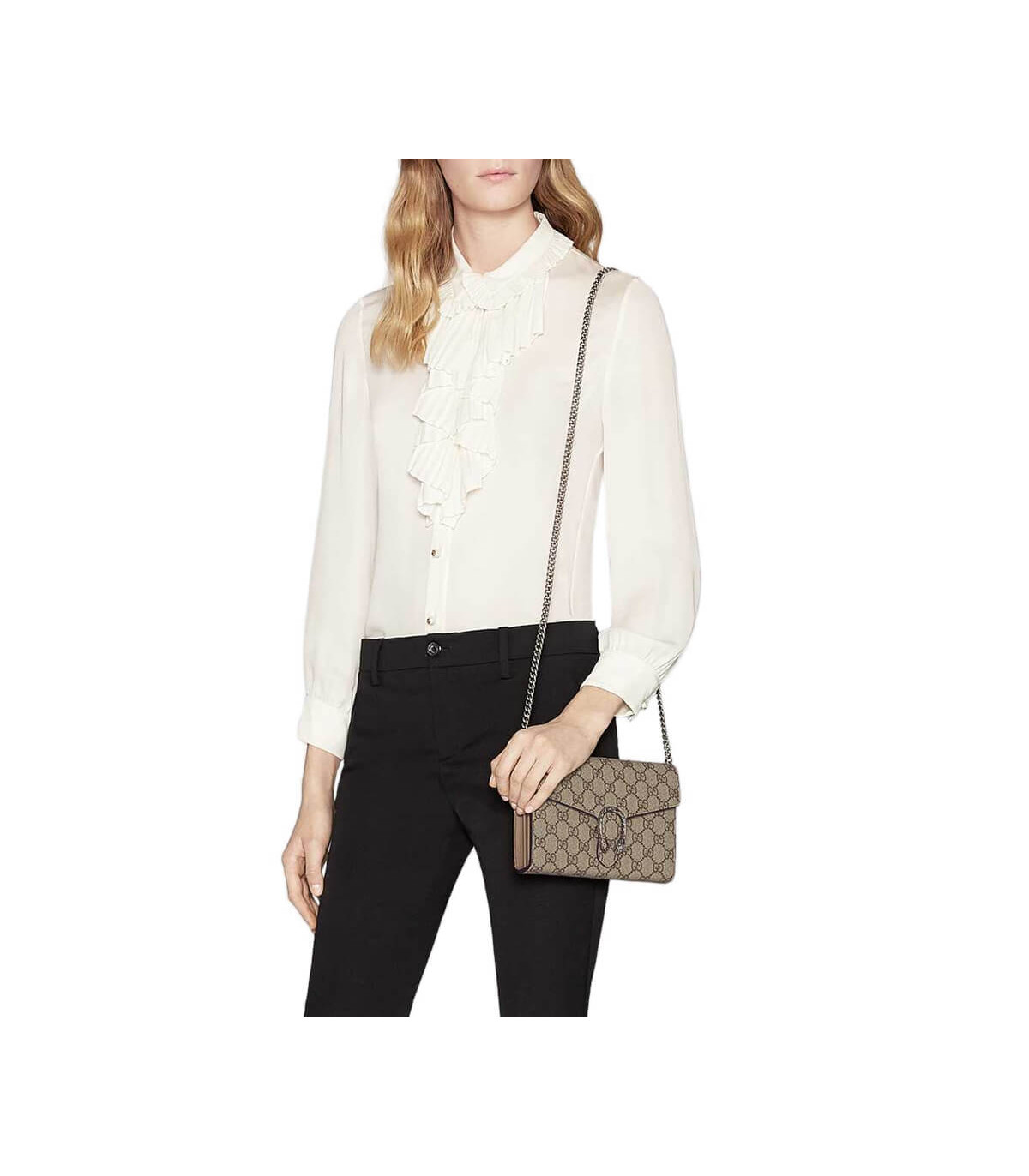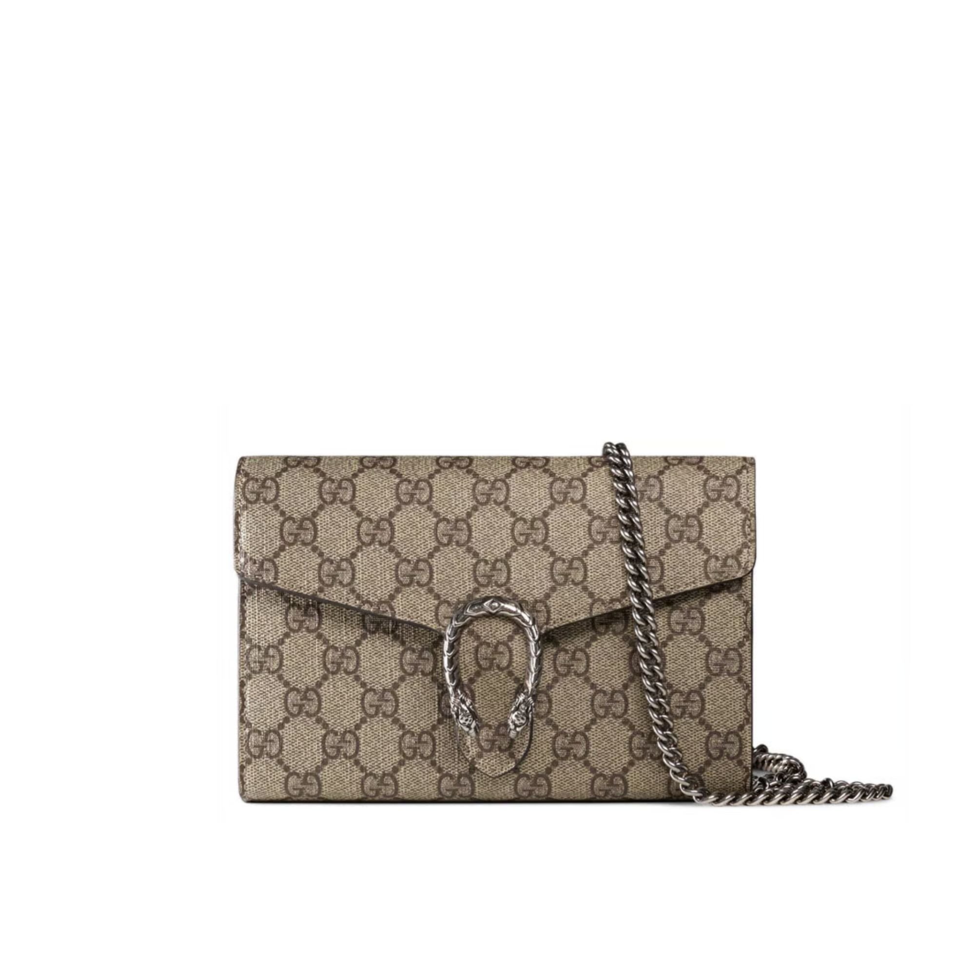 Gucci Dionysus GG Supreme Chain Wallet Beige 20cm
