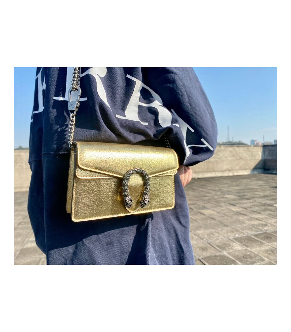 Gucci Dionysus Small Shoulder Bag in Gold Lame Leather