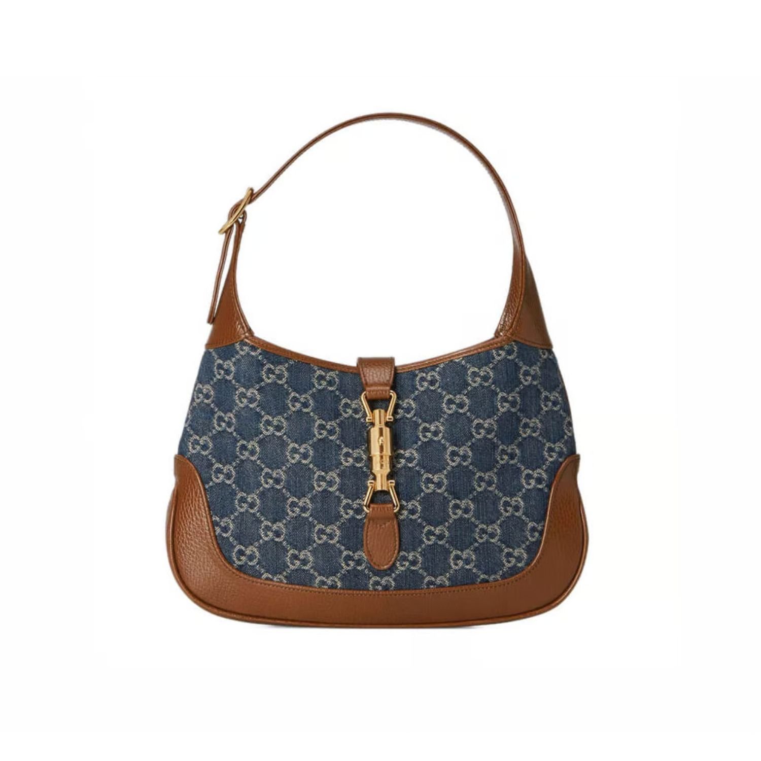 Gucci Jackie 1961 Small Shoulder Bag in Blue Jacquard Denim 28cm