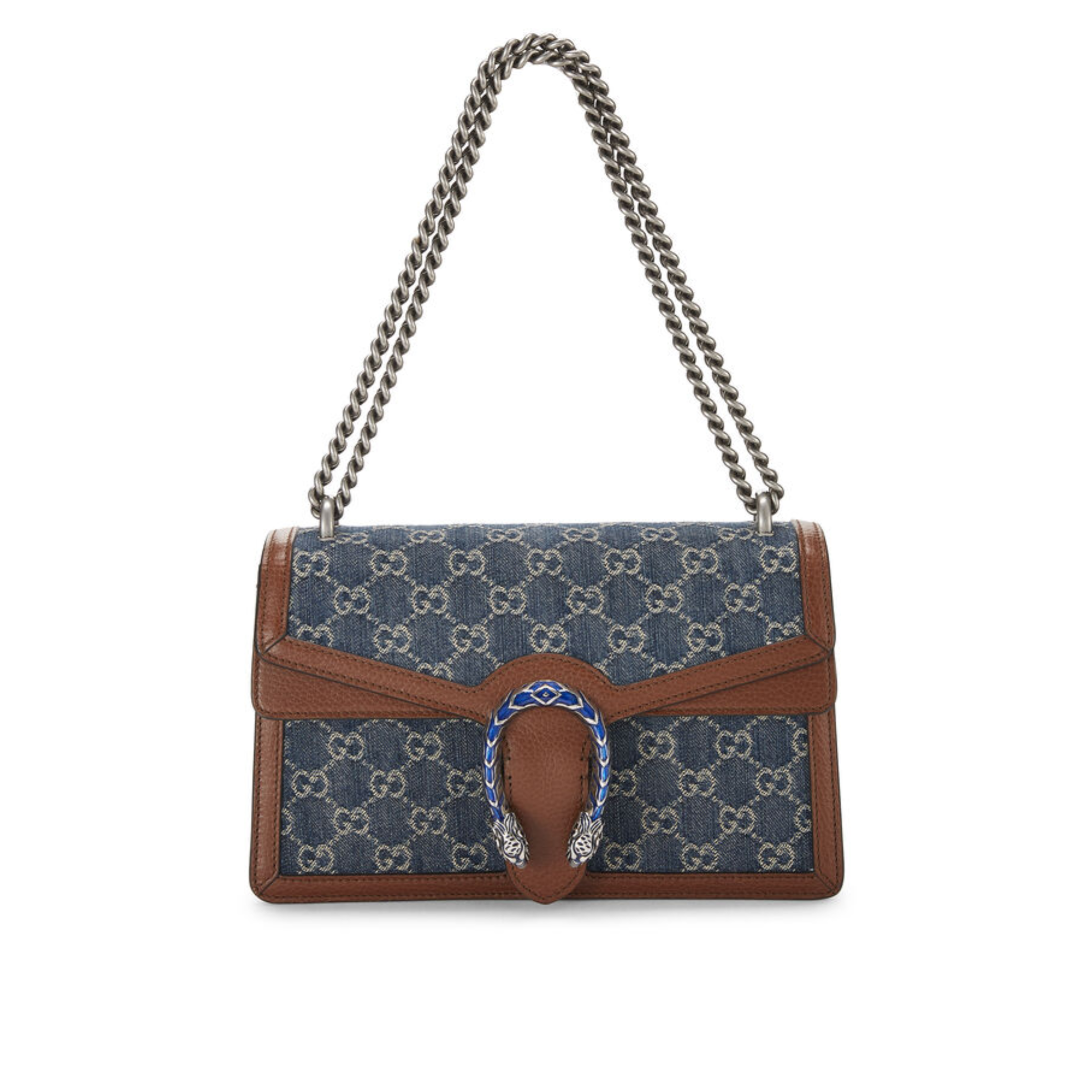 Gucci Small Dionysus Shoulder Bag in Blue Jacquard Denim 28cm