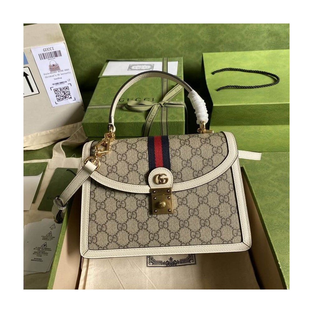 Gucci Ophidia Small Top Handle Bag With Web Burgundy