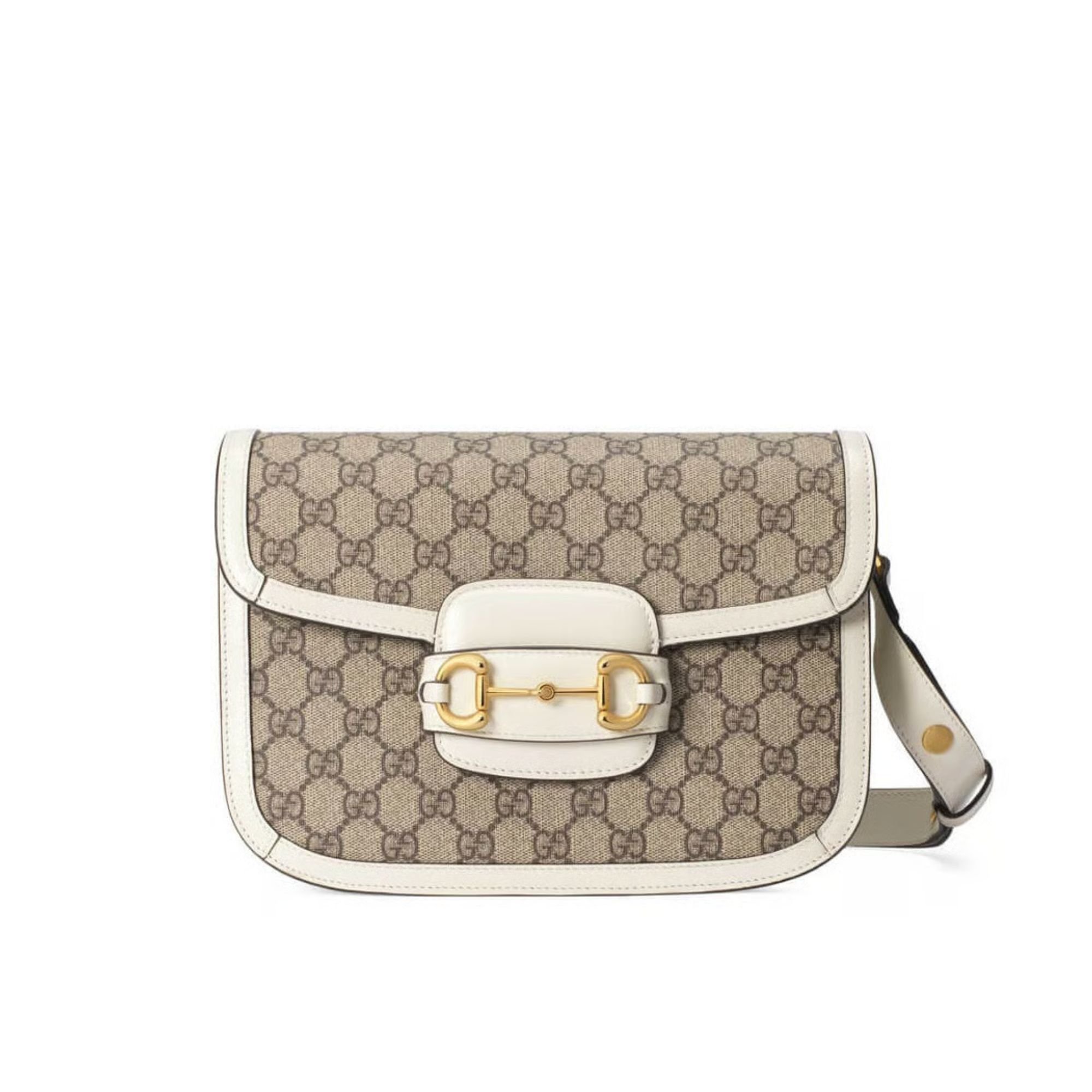 Gucci 1955 Horsebit White GG Supreme Canvas Shoulder Bag 25cm