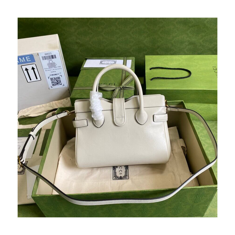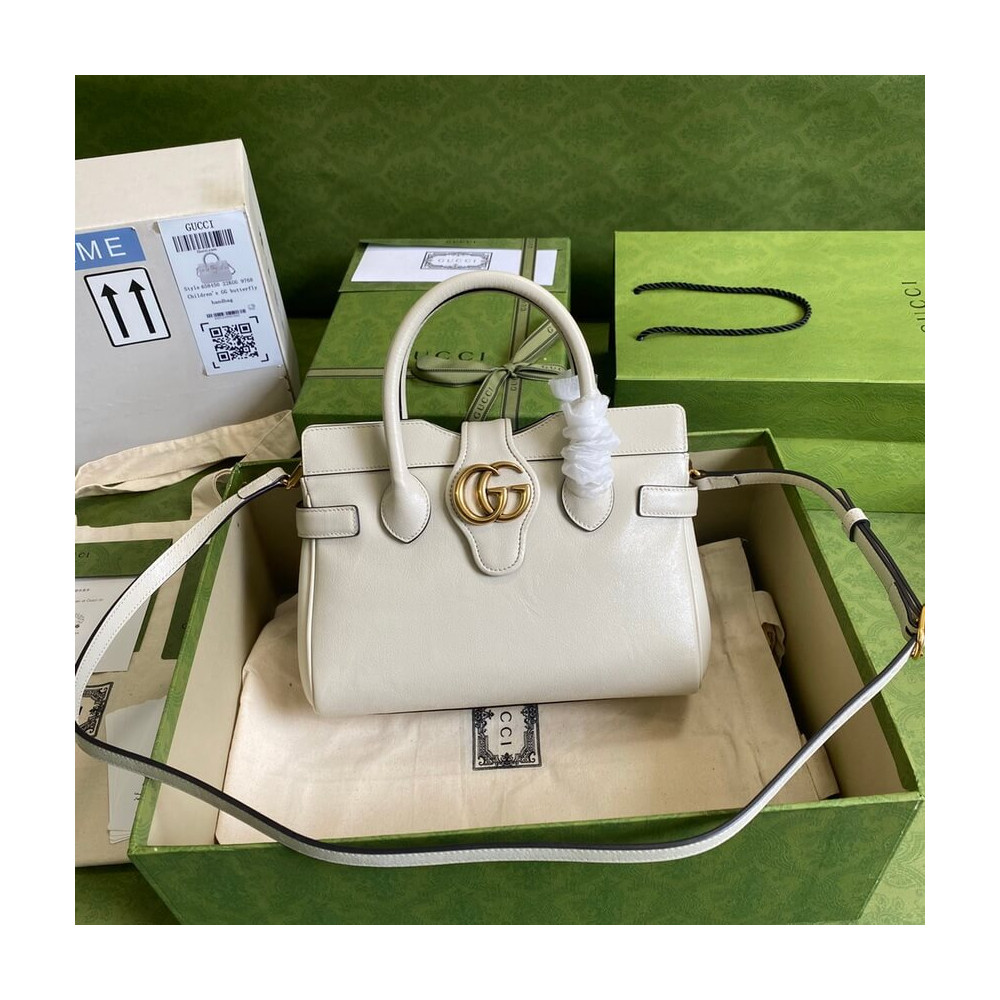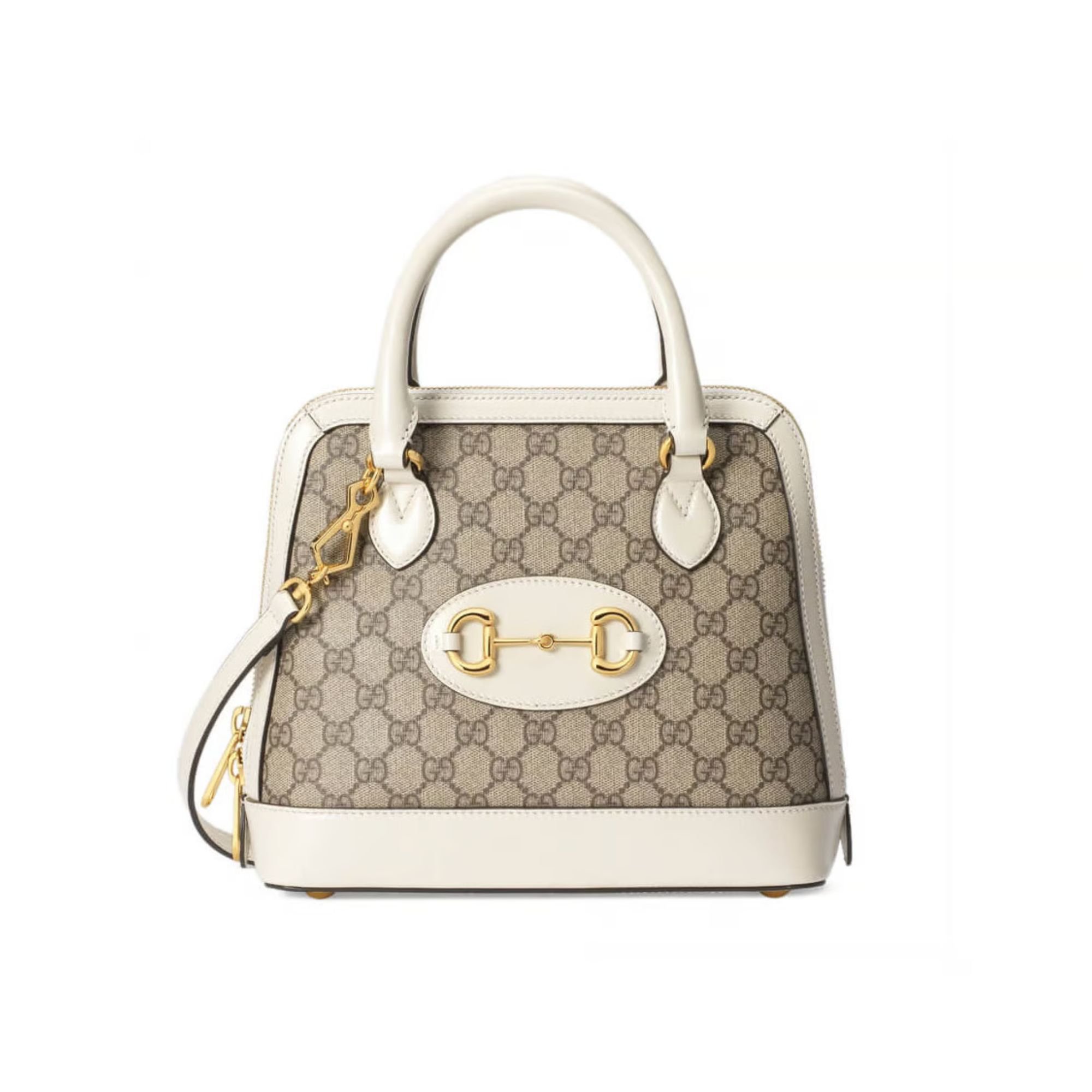 Gucci 1955 Horsebit mall Top Handle Bag In White GG Supreme Canvas 25cm