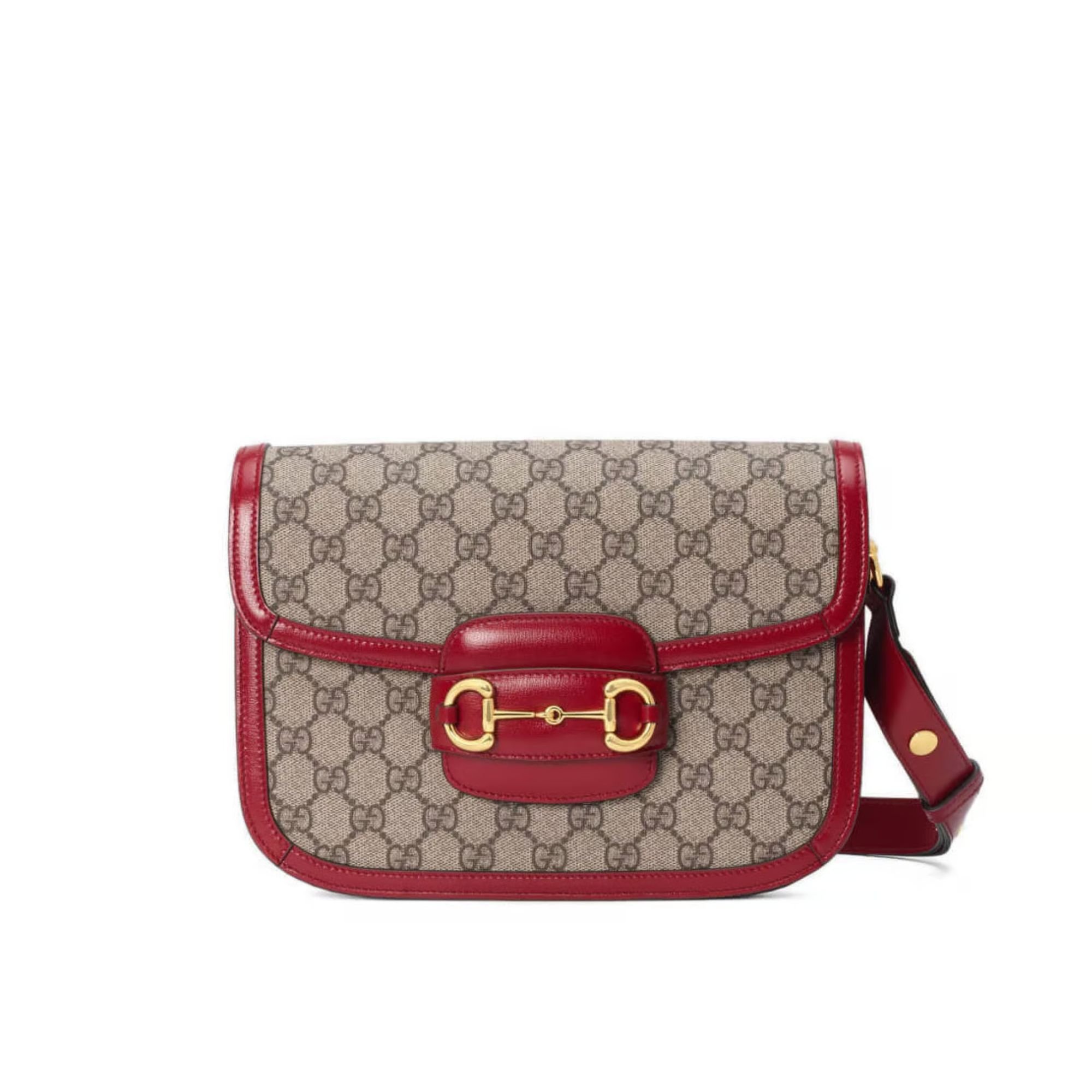 Gucci 1955 Horsebit Red GG Supreme Canvas Shoulder Bag 25cm
