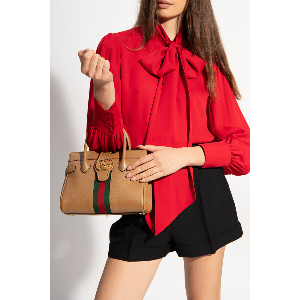 Gucci Small Top Handle Bag with Double G in Brown Leather