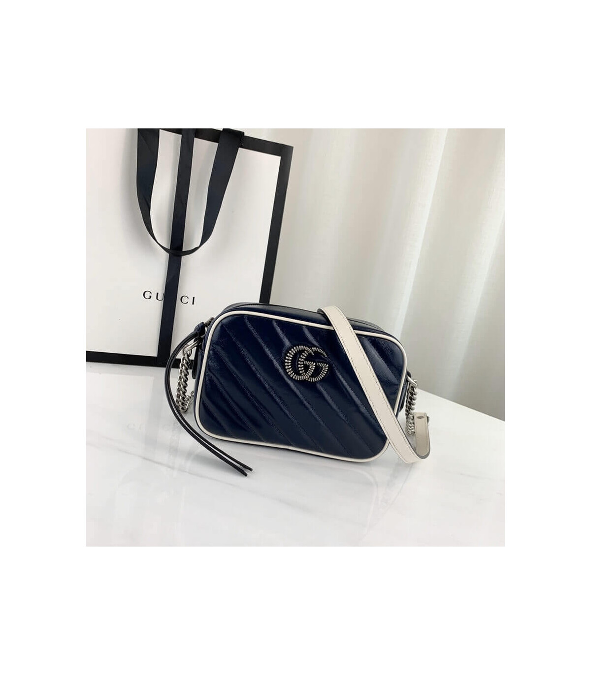 Gucci Diagonal GG Marmont Mini Bag Blue/White