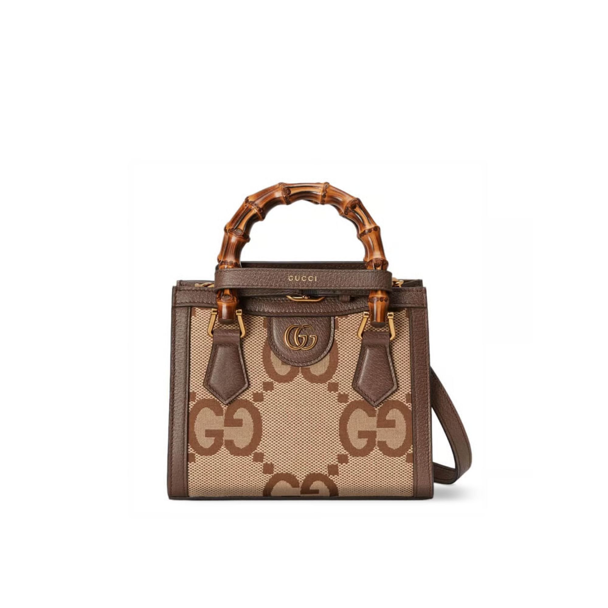Gucci Diana Jumbo GG Mini Tote Bag Camel Brown Canvas 20cm