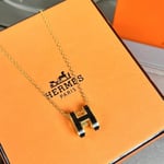 Hermes Mini Pop H Pendant Necklace Black And Gold