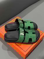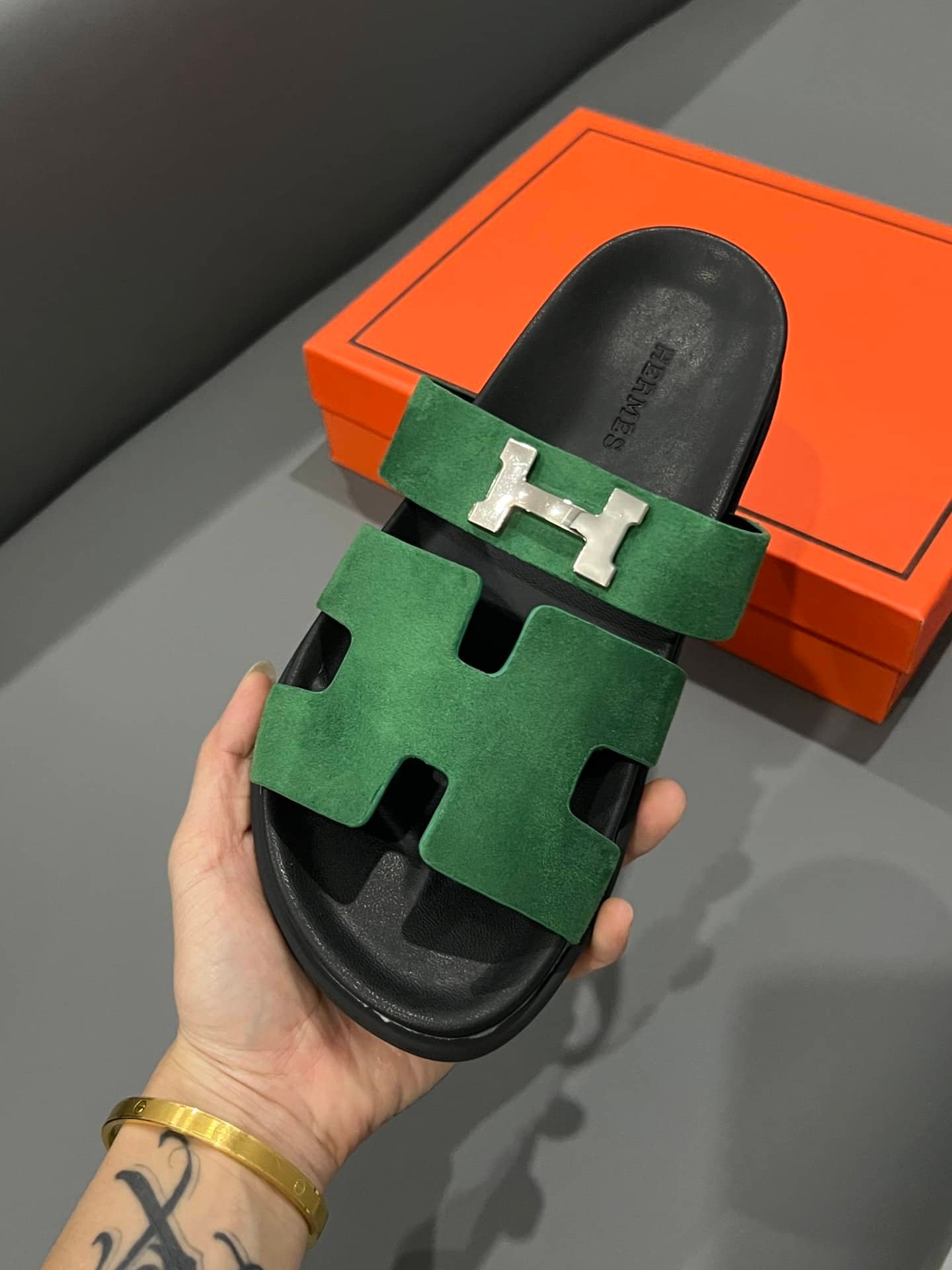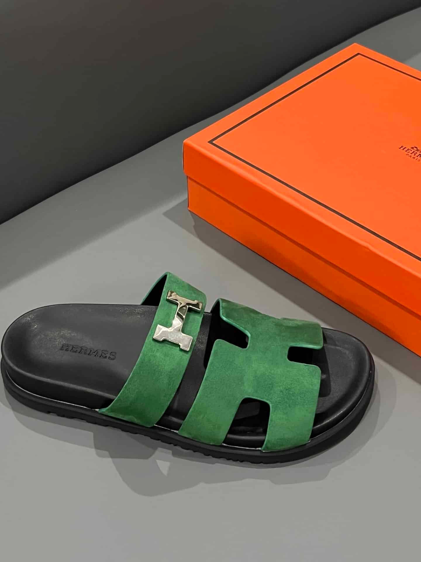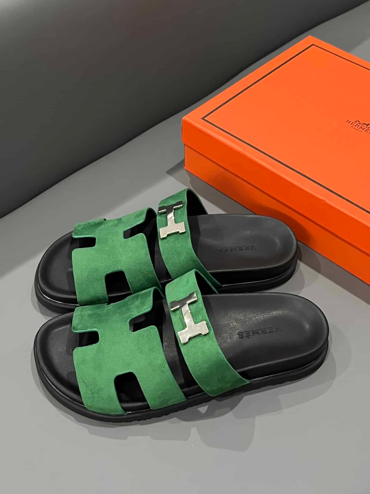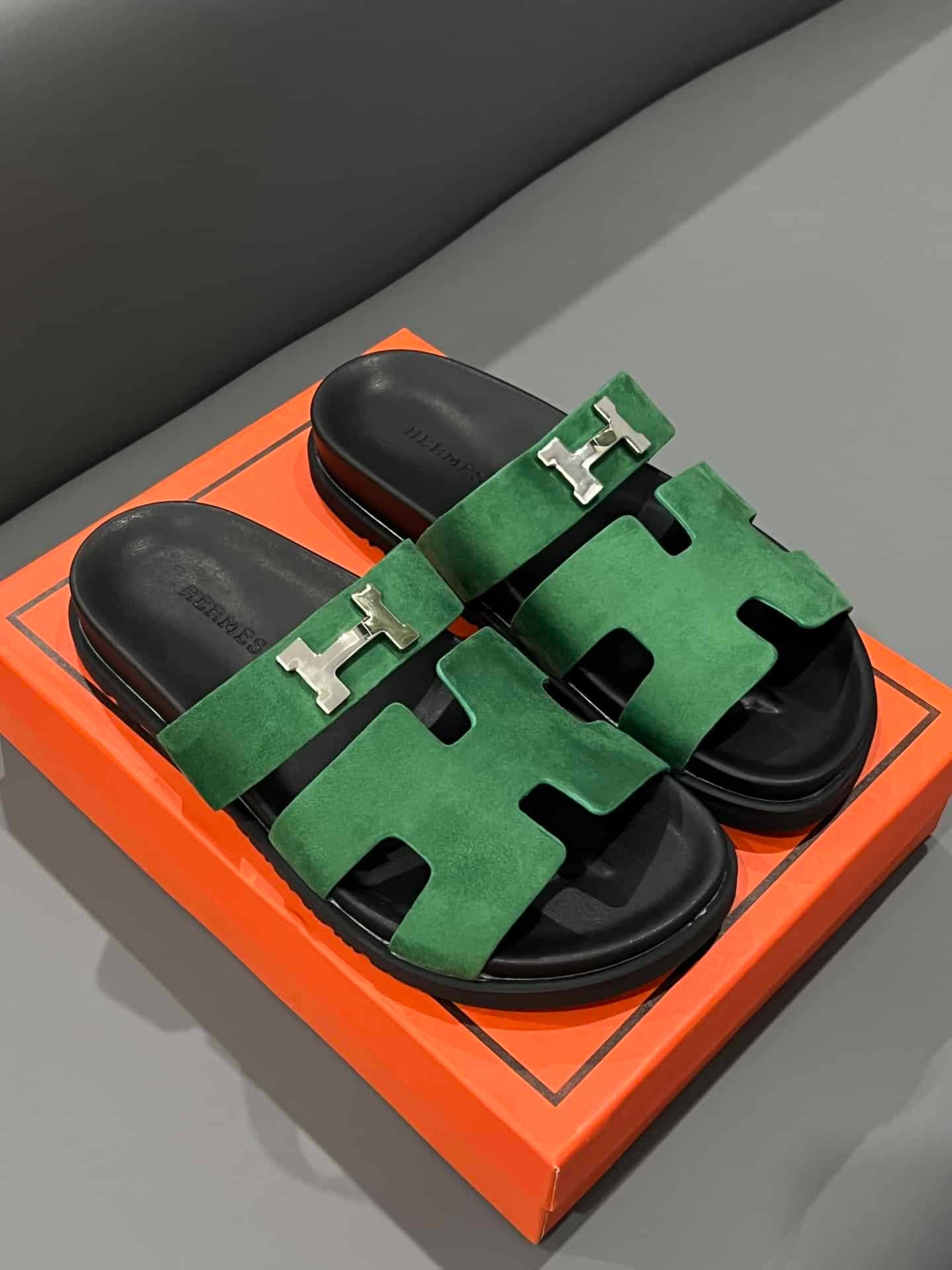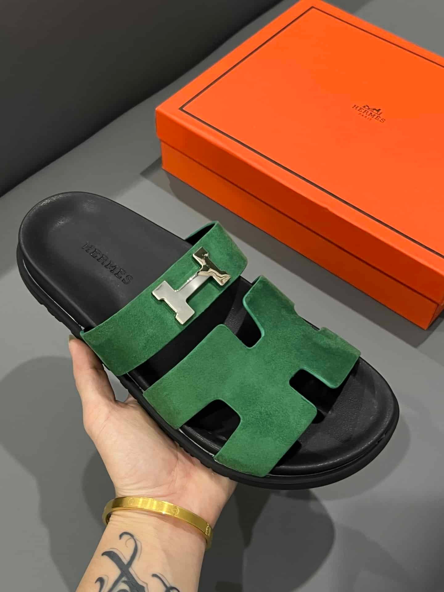 Hermes Chypre Sandal Suede H Logo Silver Hardware Green