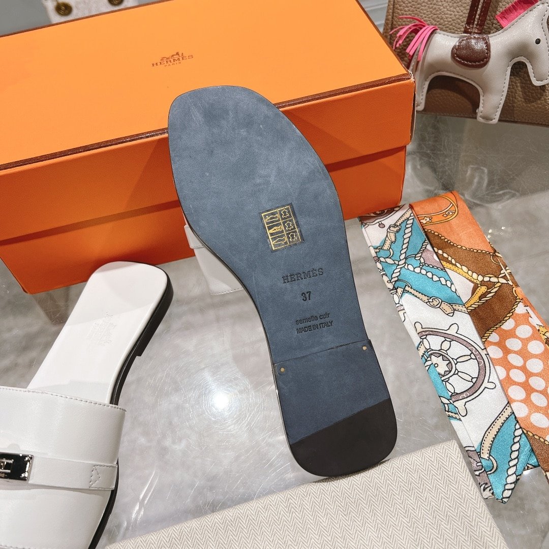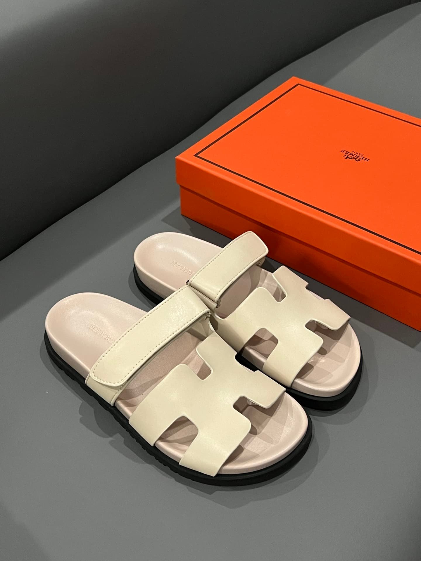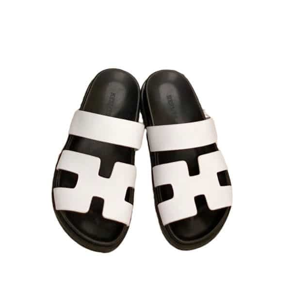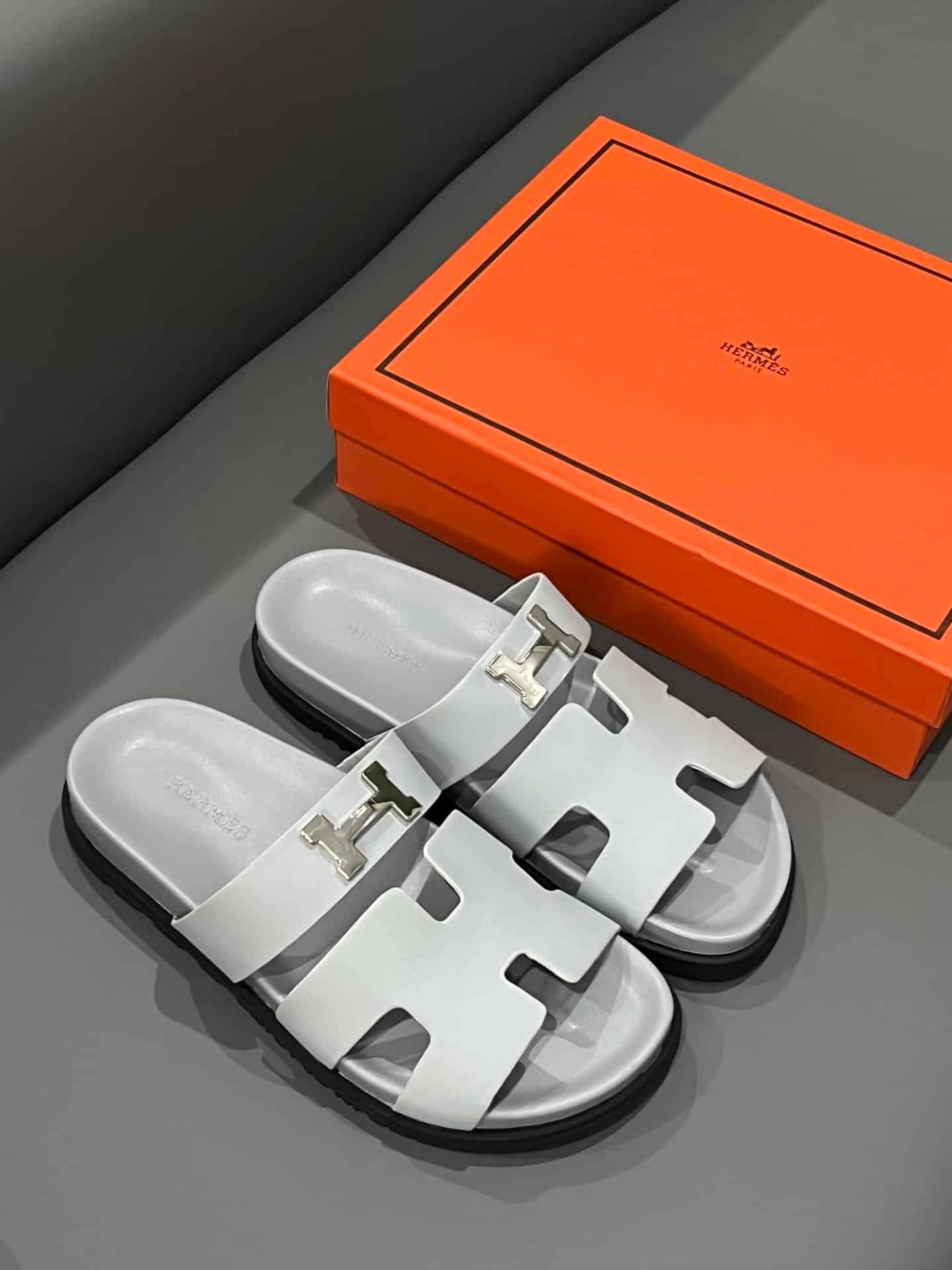Hermes Chypre Sandal H Logo Silver Hardware White