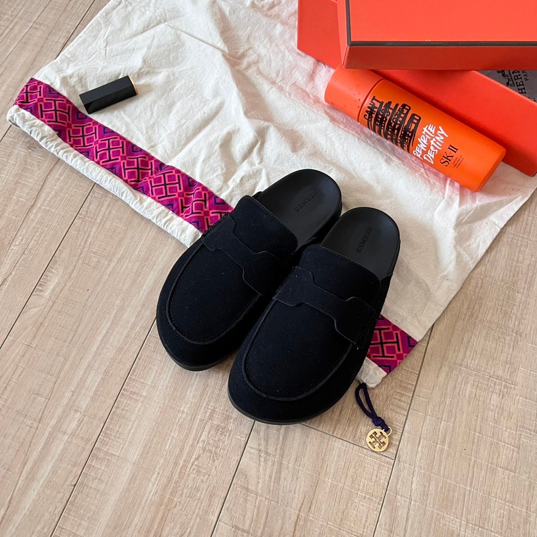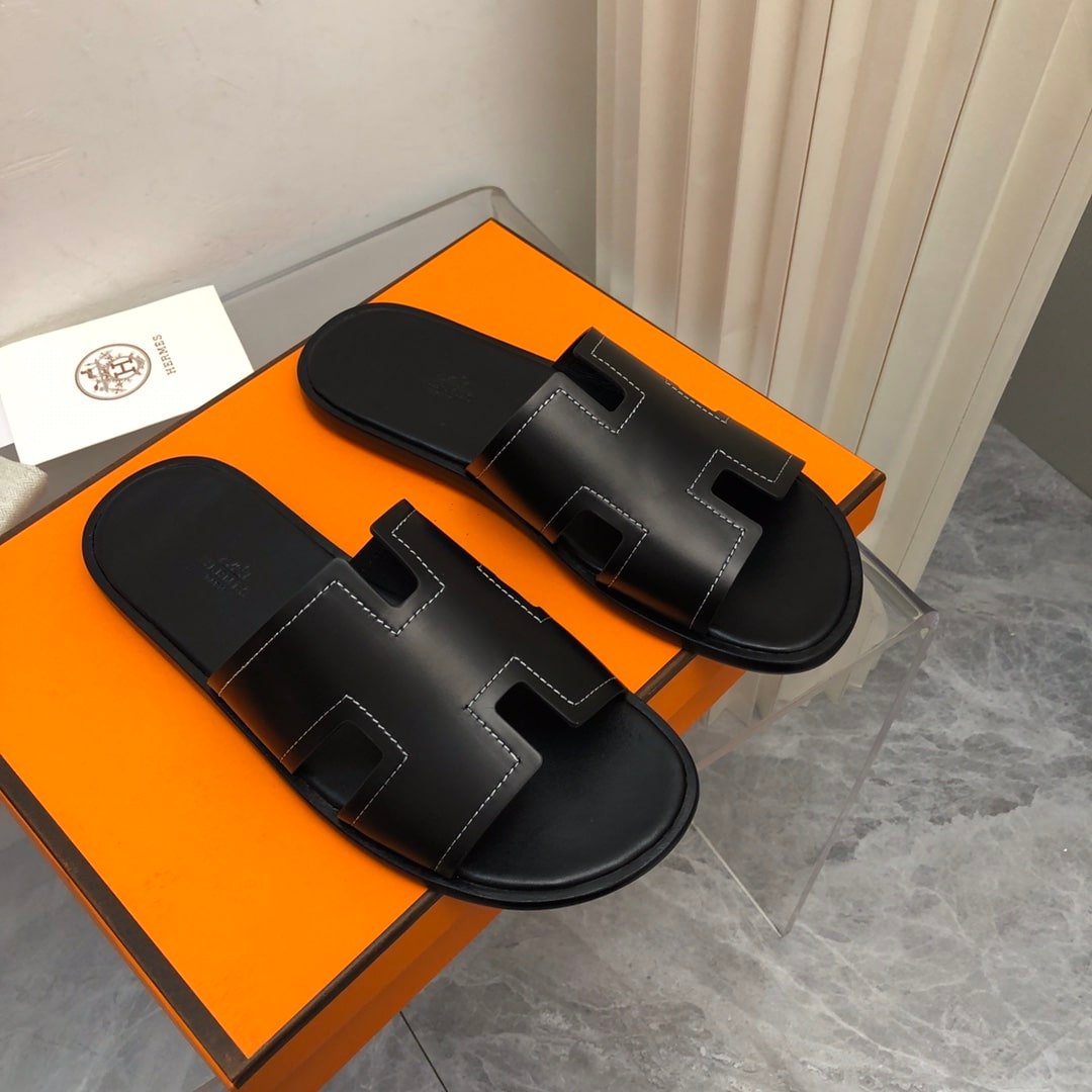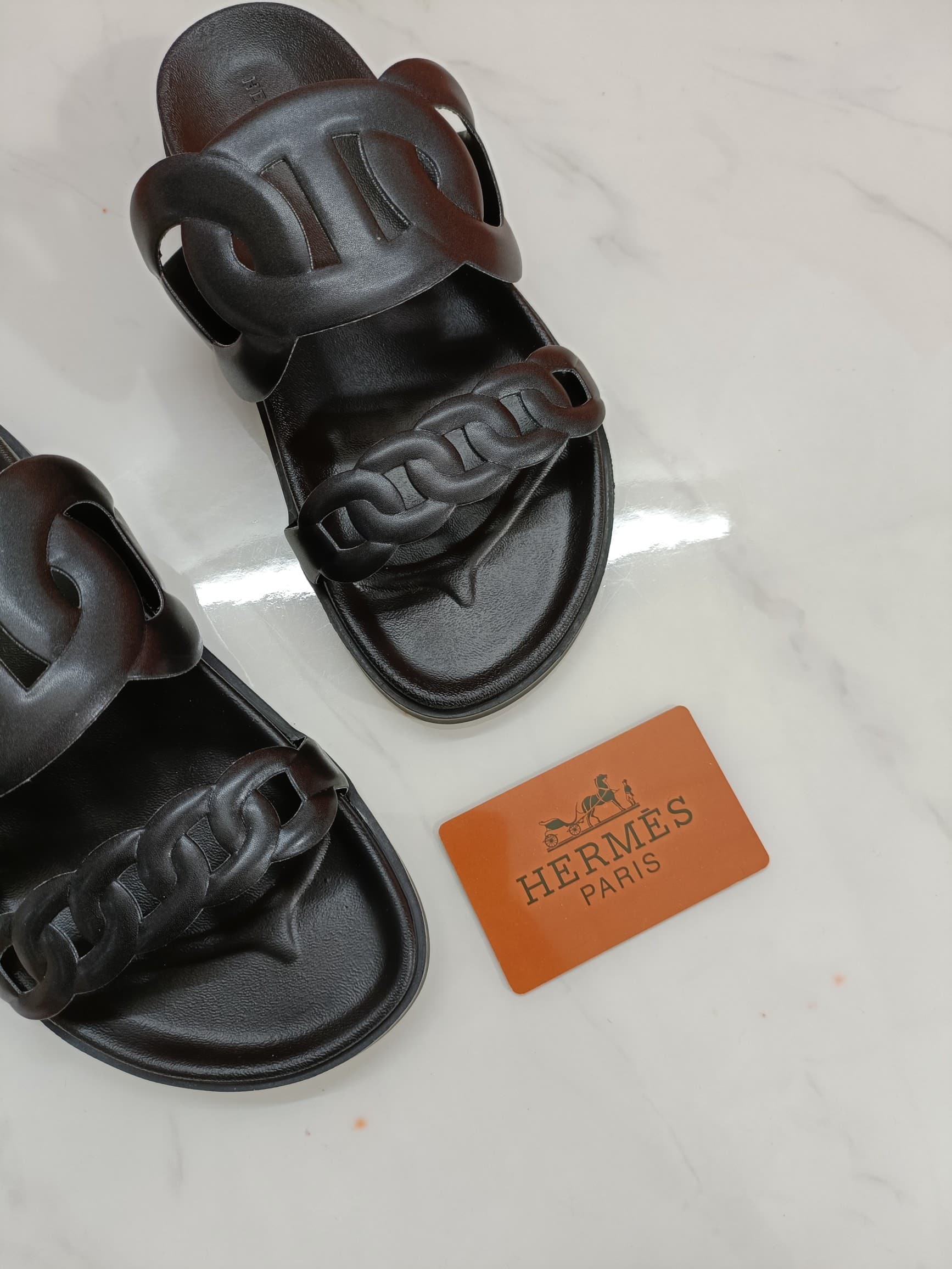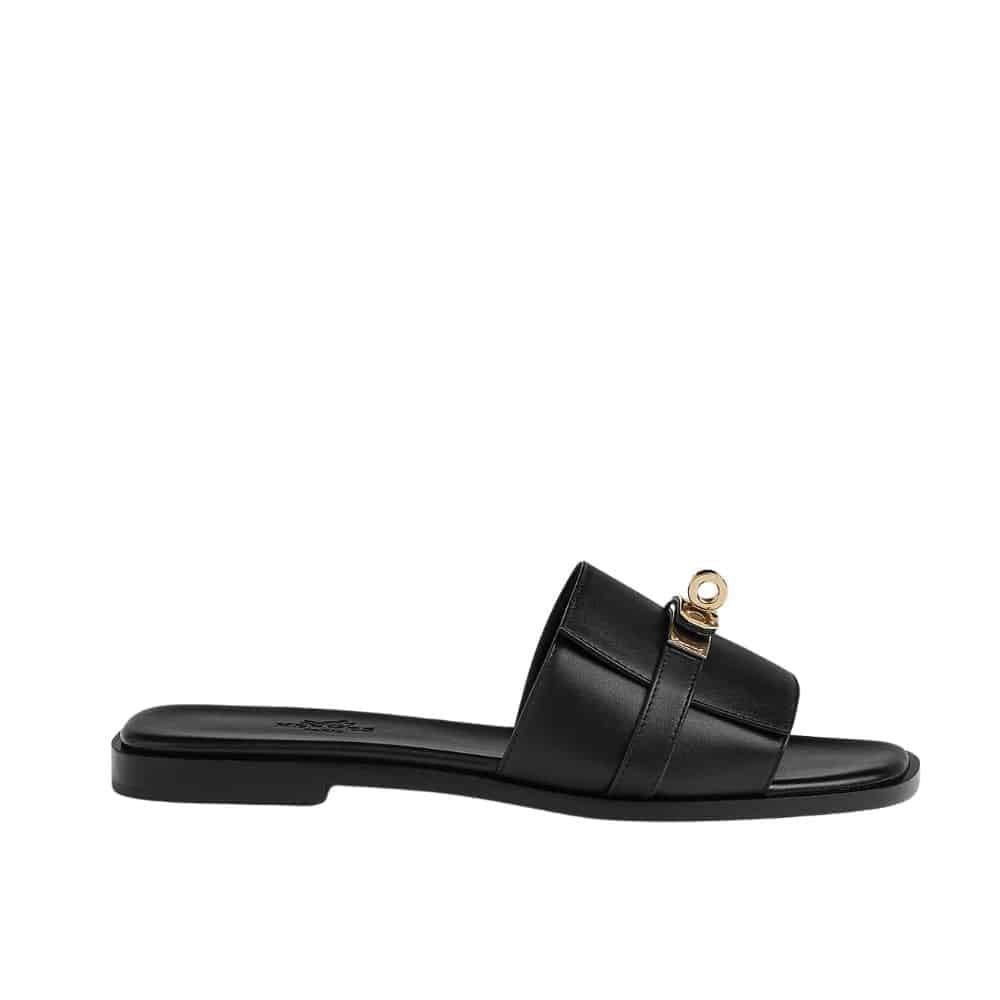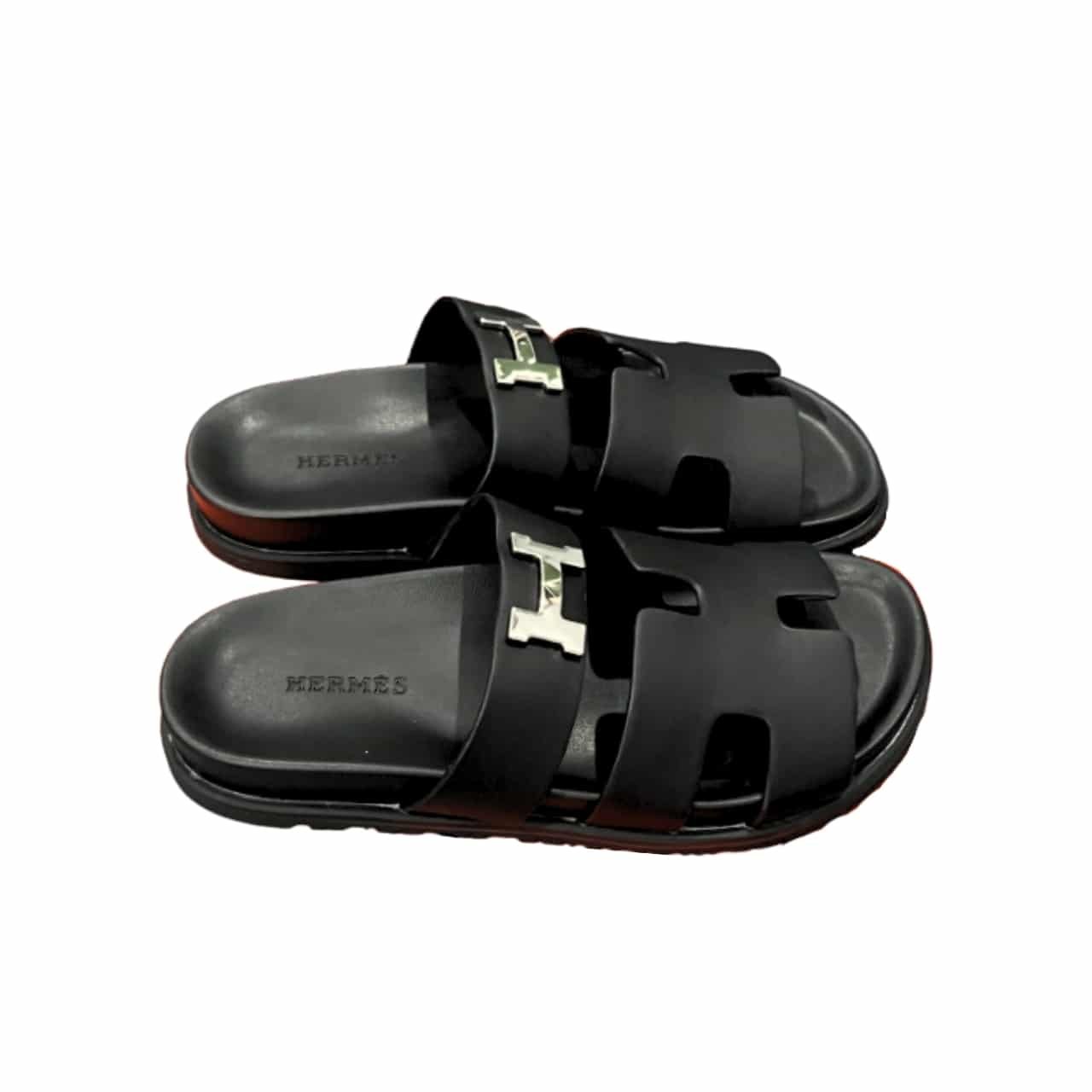 Hermes Chypre Sandal H Logo Silver Hardware Black