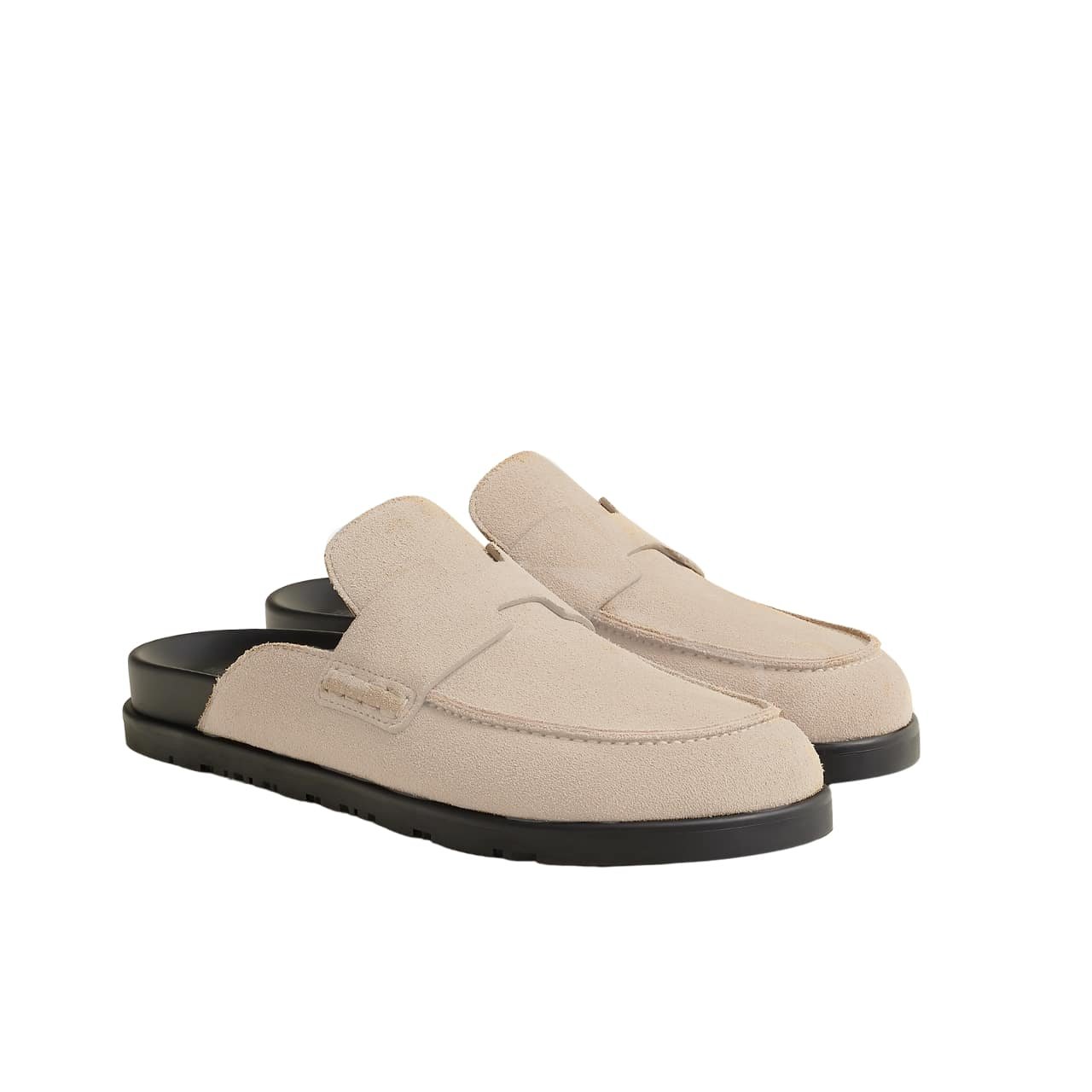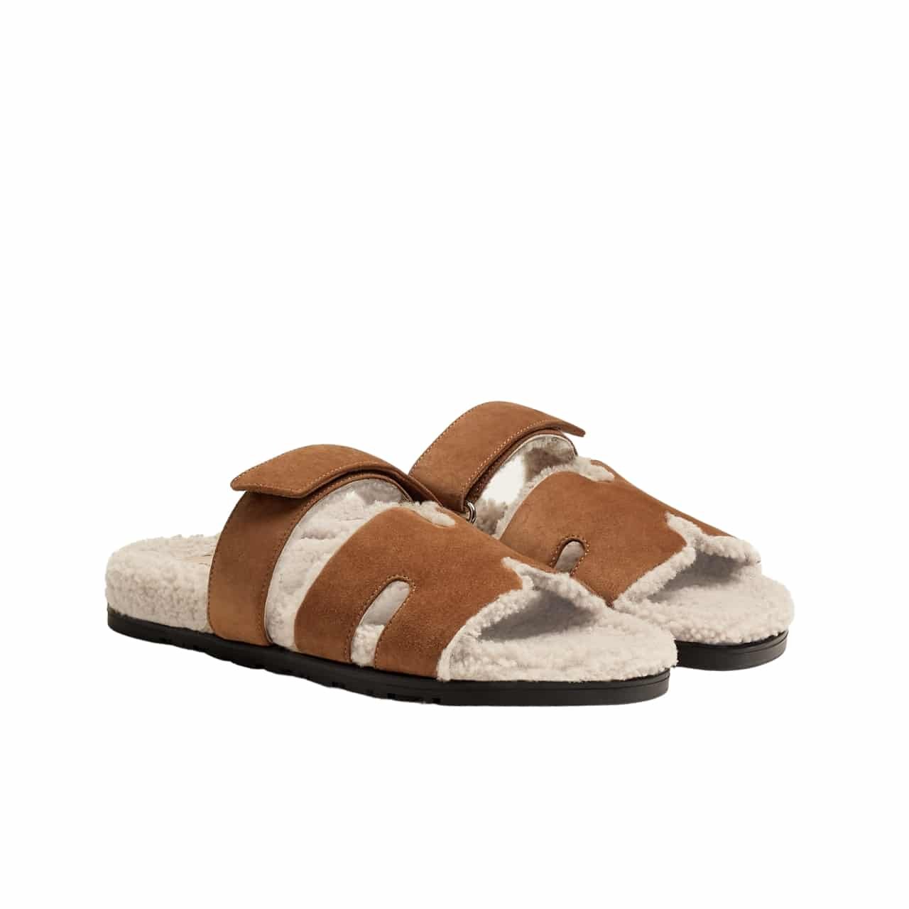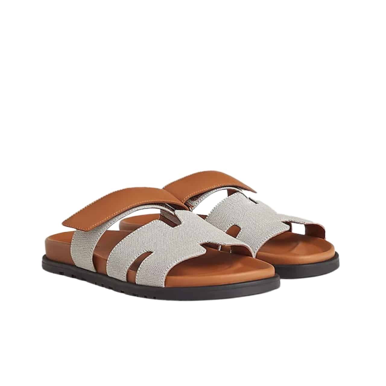 Hermes Chypre Sandal Suede H Logo Silver Hardware Light Brown