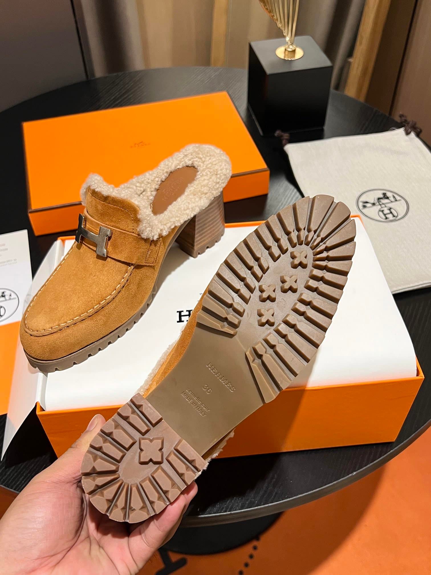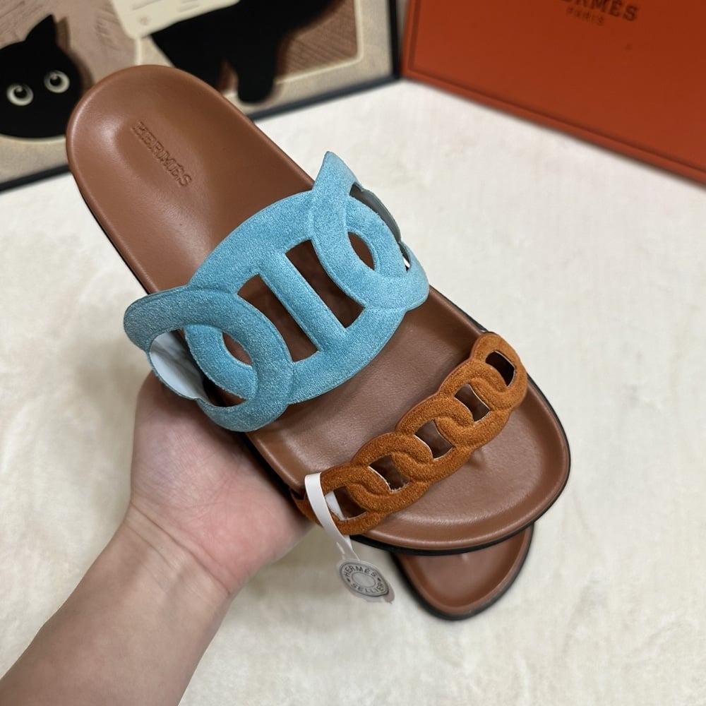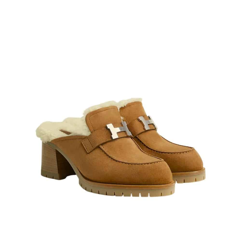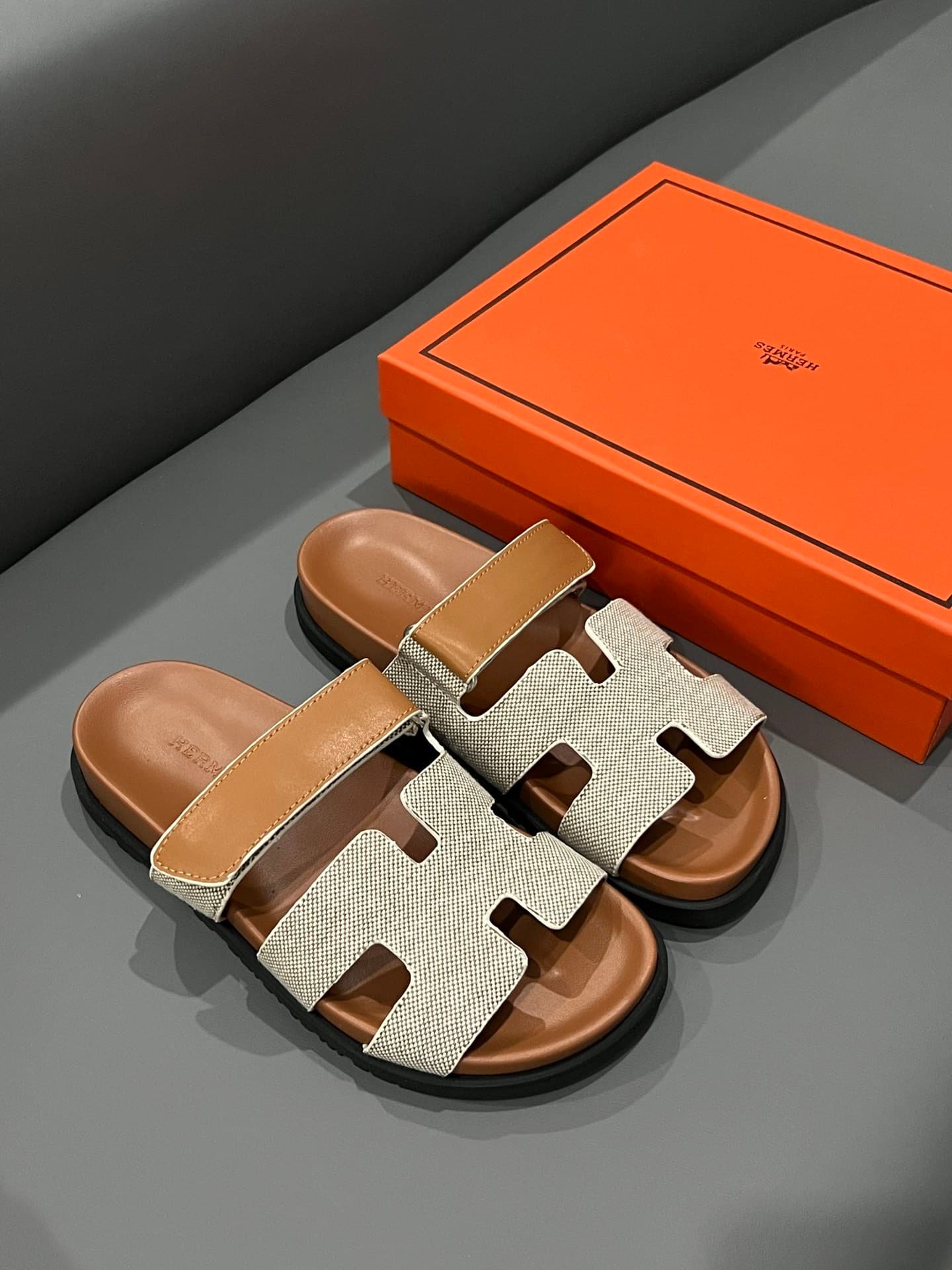 Hermes Chypre Sandal Suede H Logo Silver Hardware Light Brown