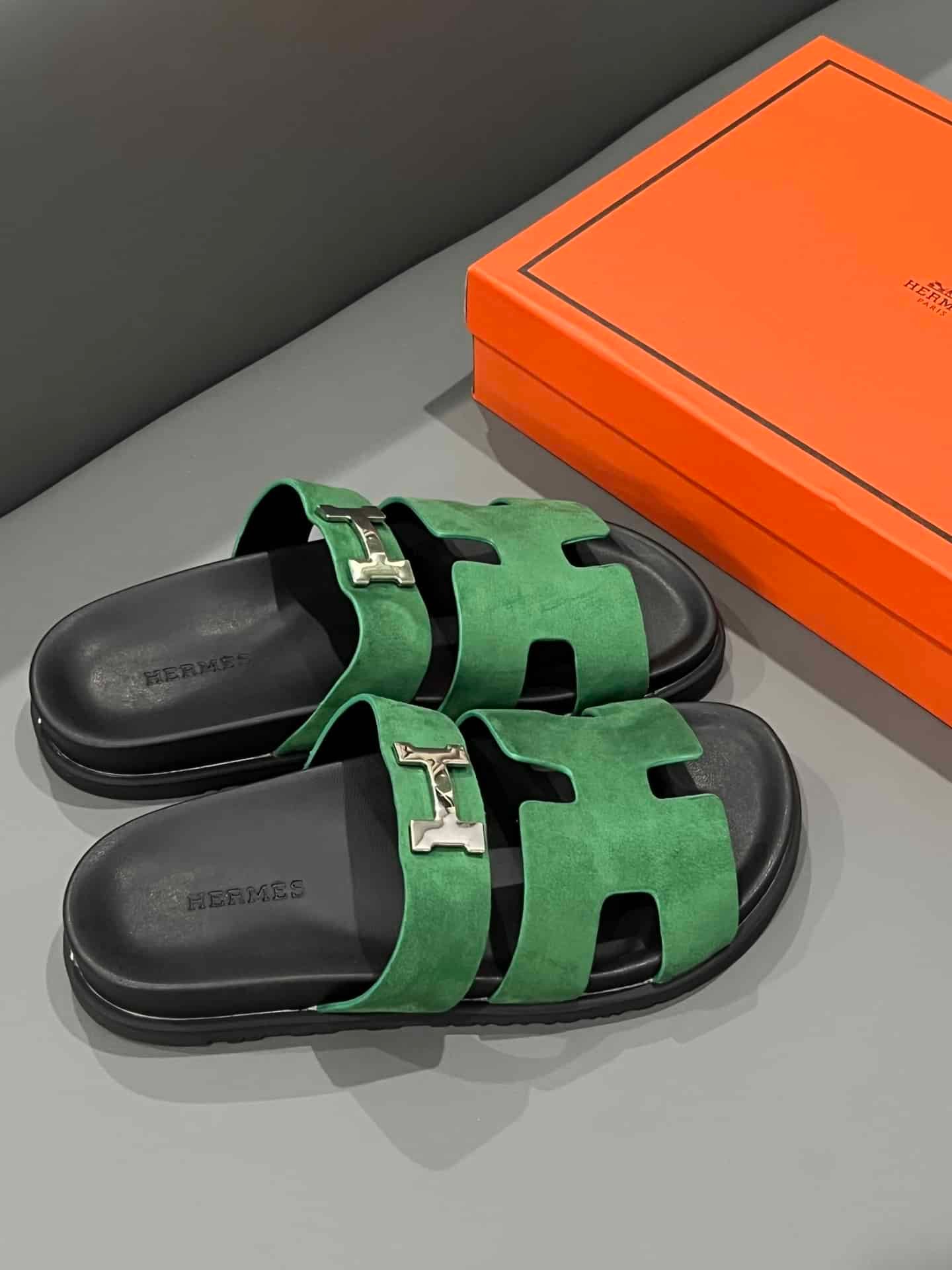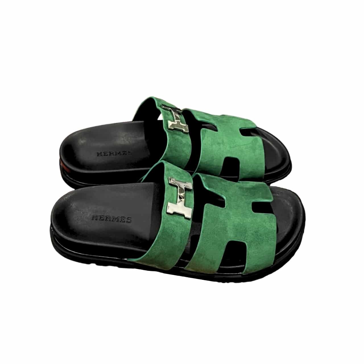 Hermes Chypre Sandal Suede H Logo Silver Hardware Green