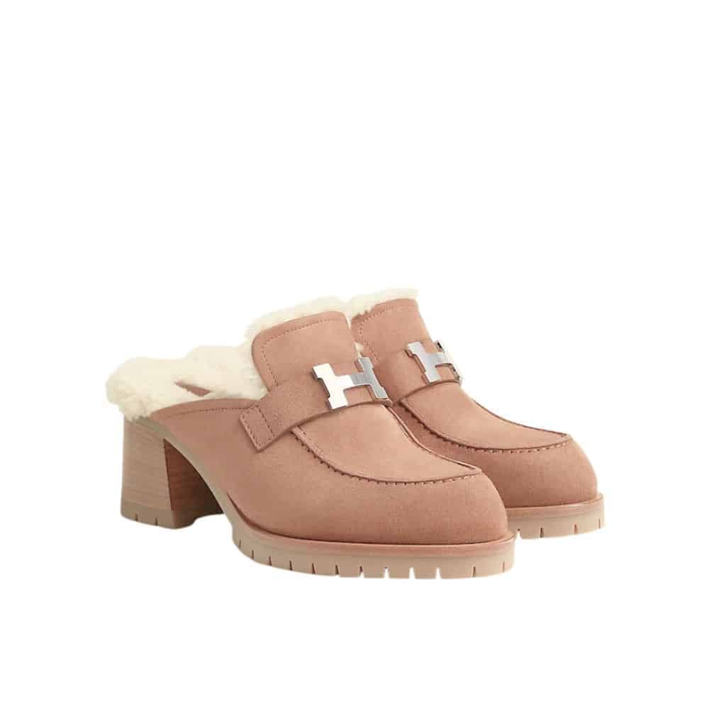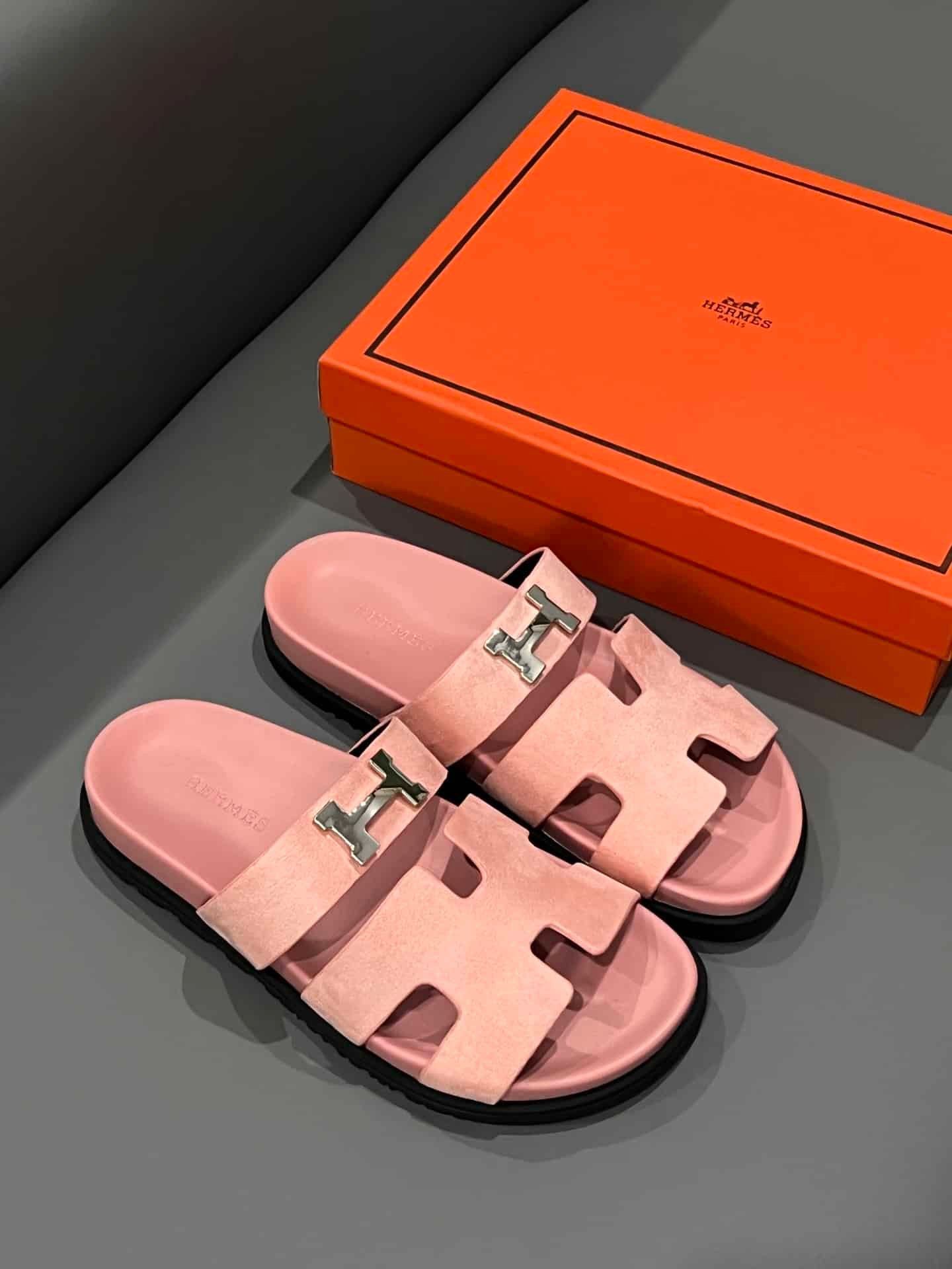 Hermes Chypre Sandal H Logo Silver Hardware Pink