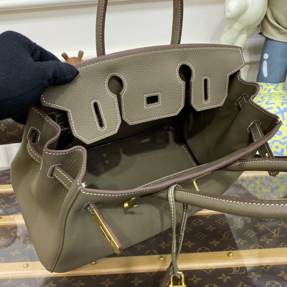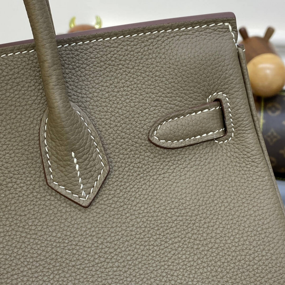 • Hermes Birkin 30 Bag Etoupe Gold Hardware Togo Leather