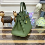• Hermes Birkin 30 Bag Vert Foret Gold Hardware Togo Leather
