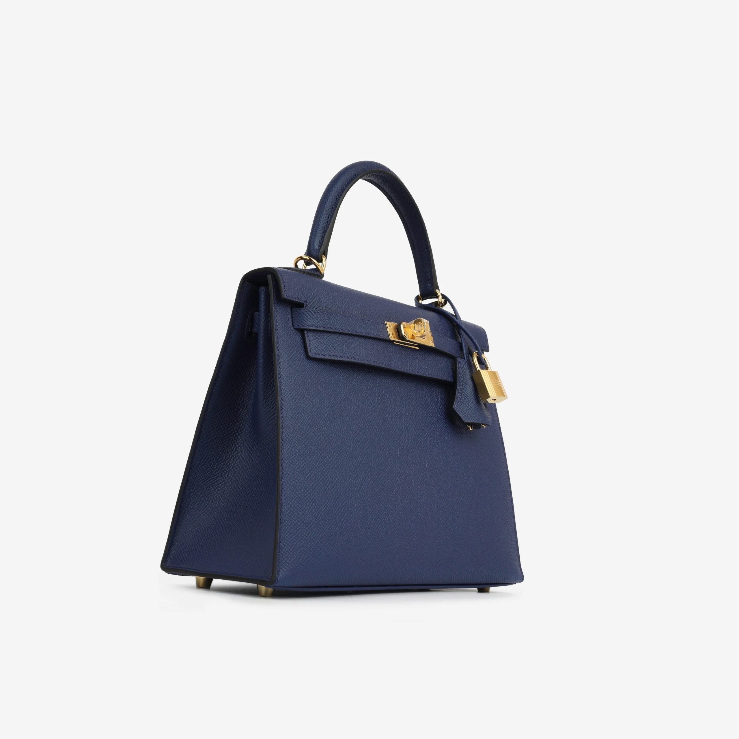 Hermes Kelly 25 Bag In Golden Bleu Navy Epsom Leather For Women 25cm/10in