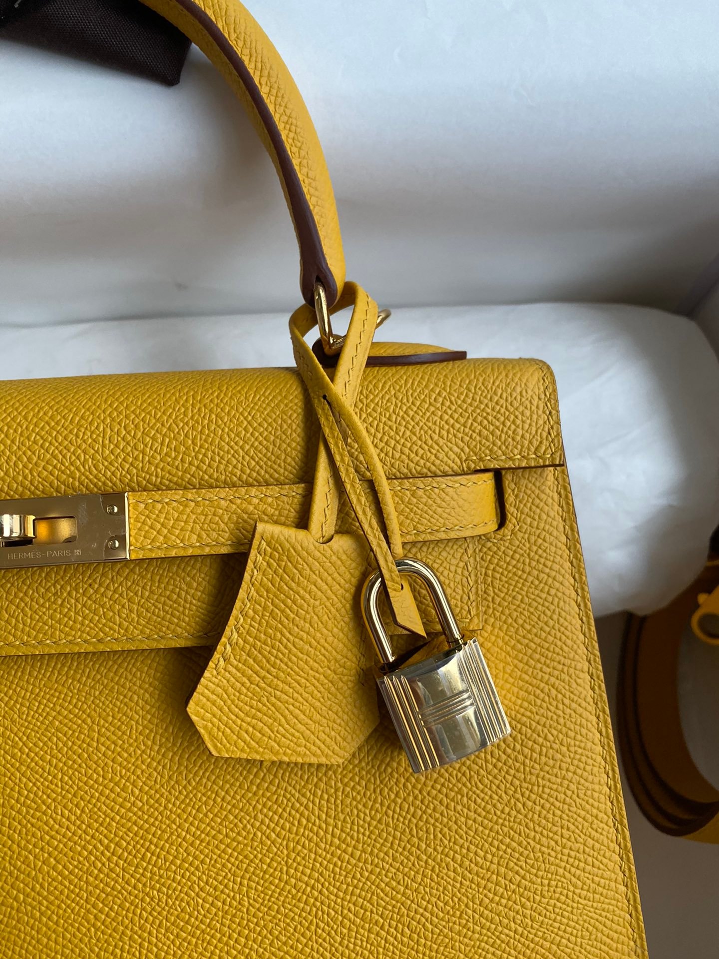 Hermes Kelly 25 Bag In Mustard Yellow Epsom Leather For Women 25cm/10in