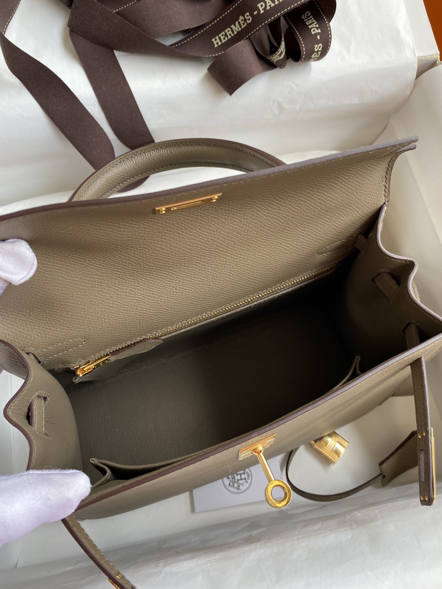 Hermes Kelly 25 Bag In Taupe Epsom Leather For Women 25cm/10in