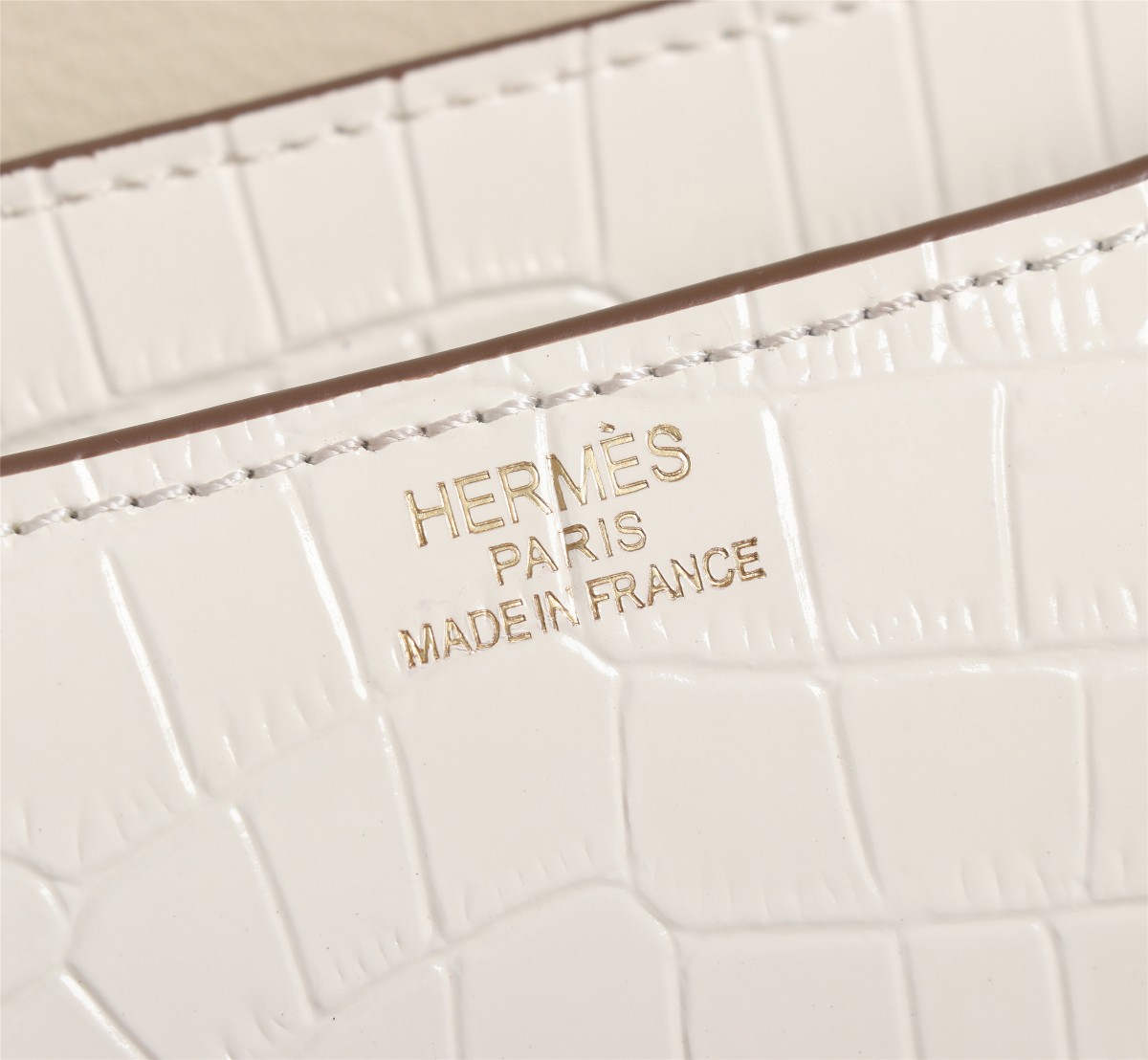 • Hermès Mini Constance 19 Shiny Alligator Gold Hardware White 19cm / 7.5in