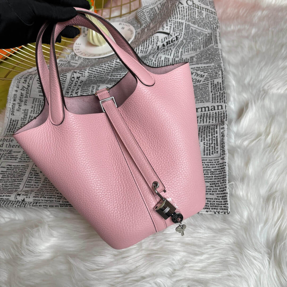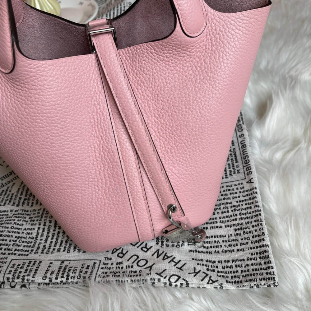Hermes Picotin Lock Bag In Taurillon Clemence 3Q Rose Sakura 22Cm