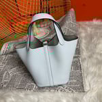 Hermes Picotin Lock Bag In Taurillon Clemence Bleu Pale 22Cm