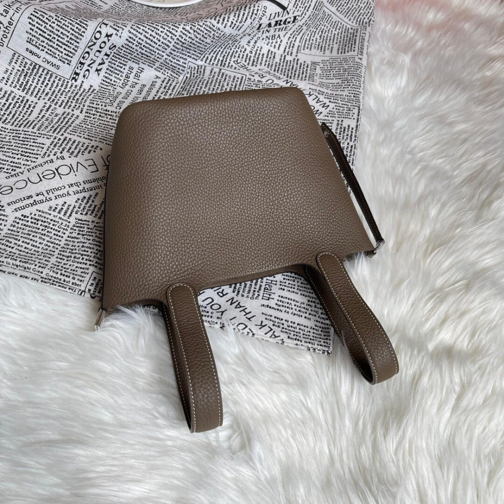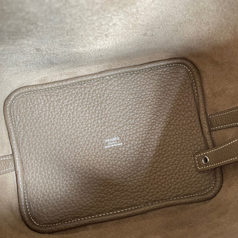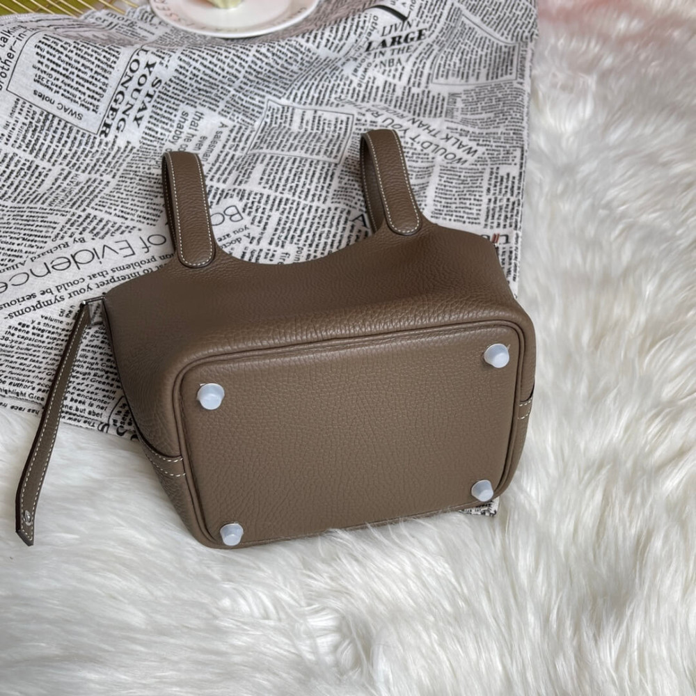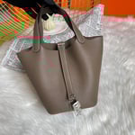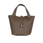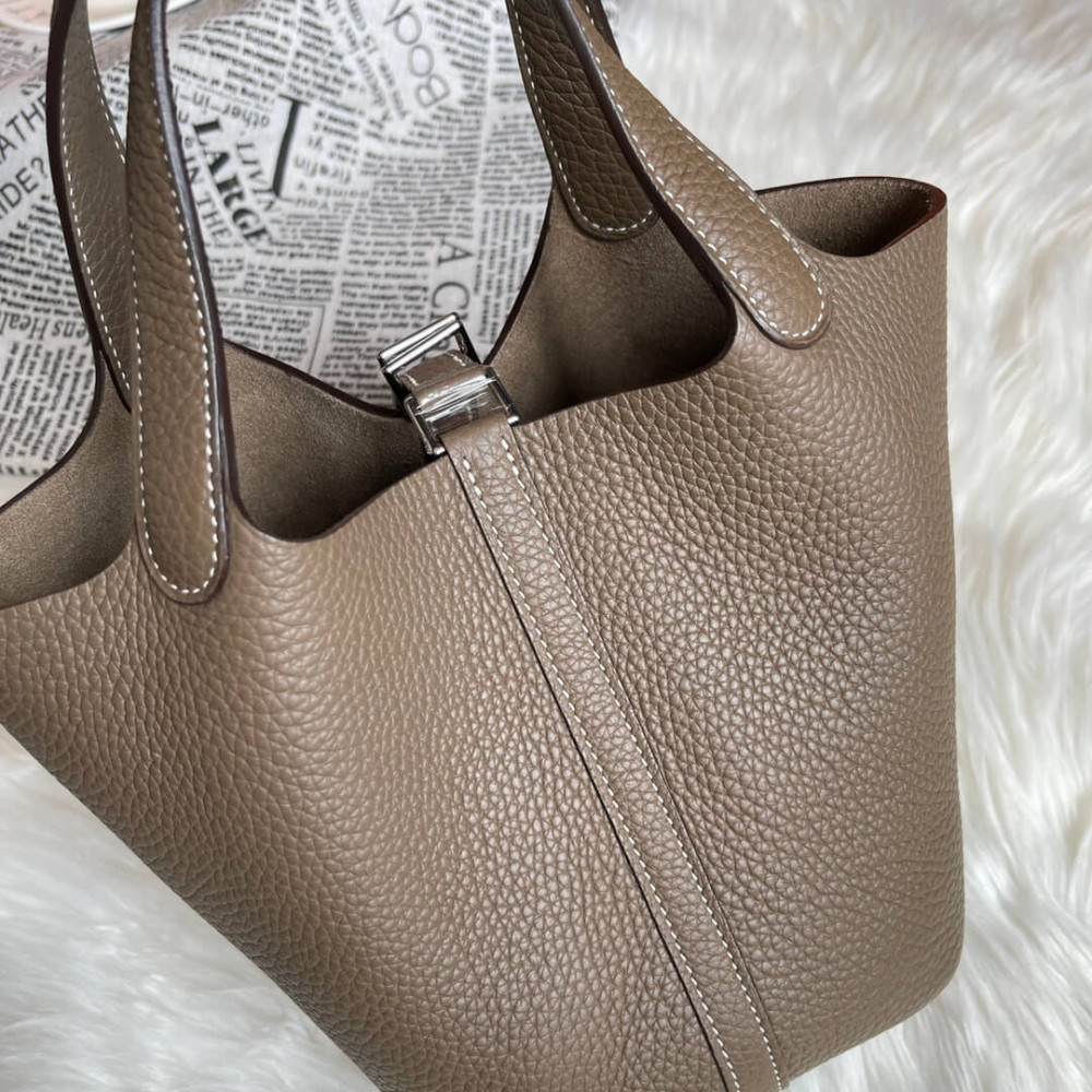 Hermes Picotin Lock Bag In Taurillon Clemence Etoupe Grey 22Cm