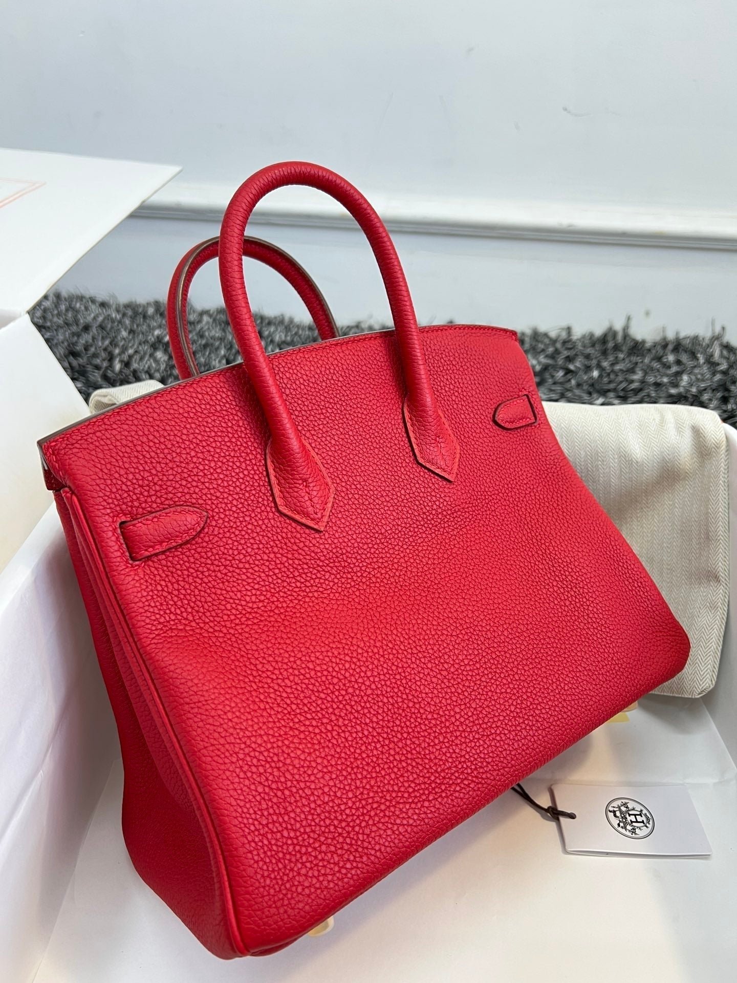 • Hermes Birkin 25Cm Red Togo Leather Gold Hardware