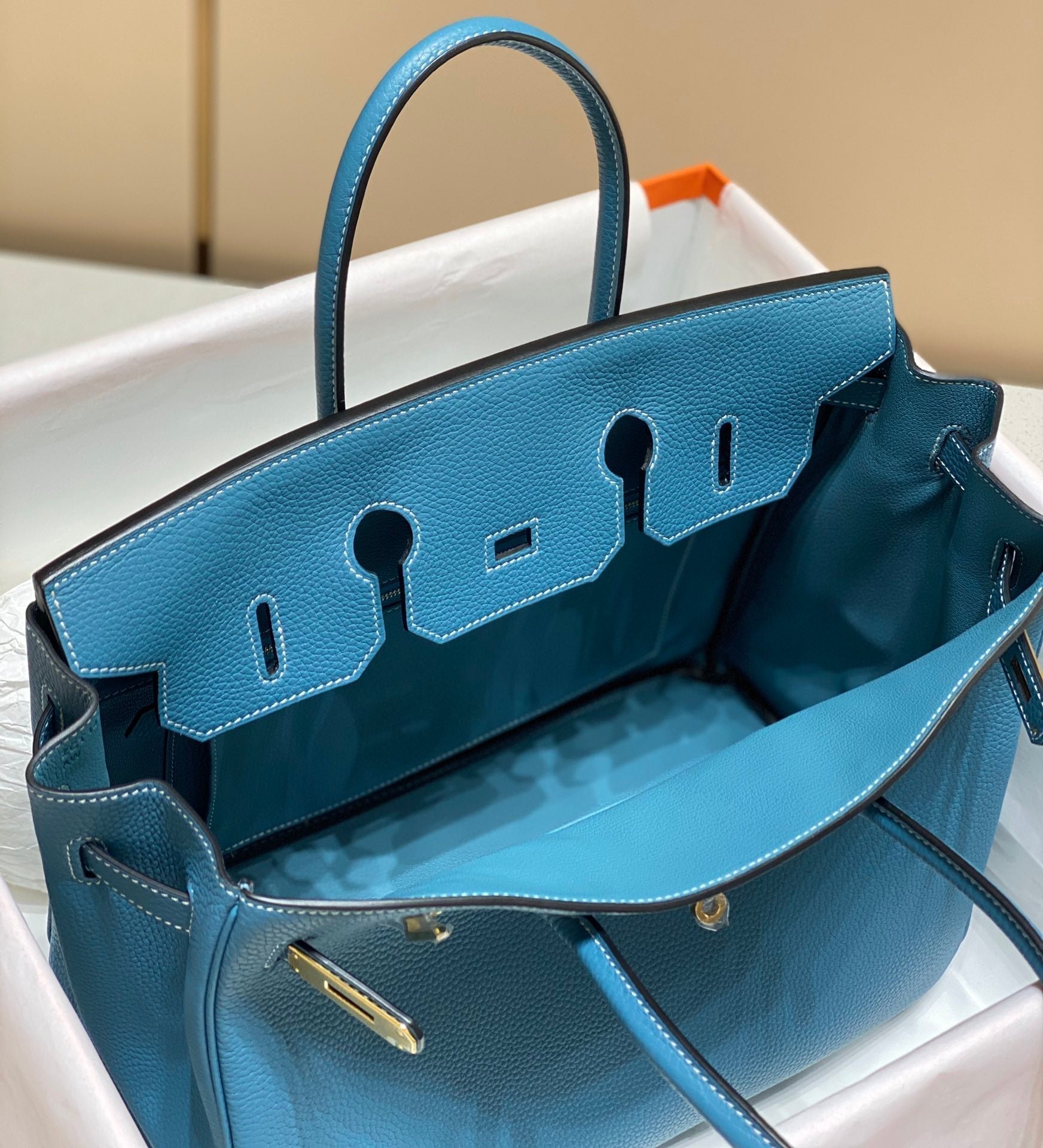 • Hermes Birkin 35Cm Bag Cerulean Togo Gold Hardware