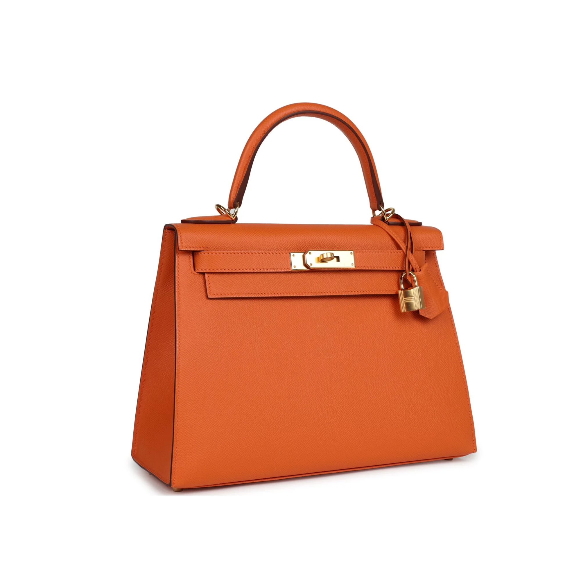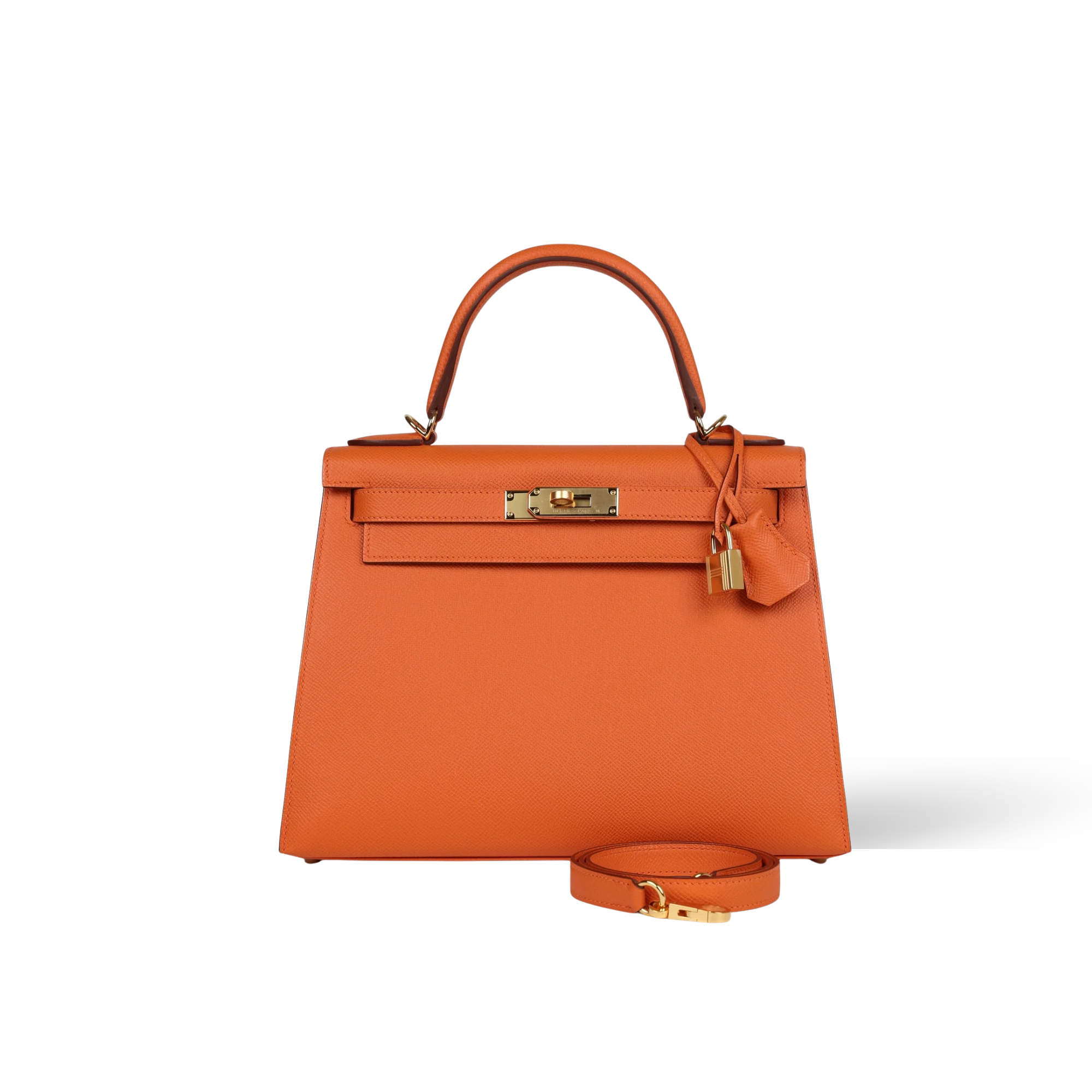 Hermes Kelly 25 Bag In Gold Orange Epsom Leather For Women 25cm/10in