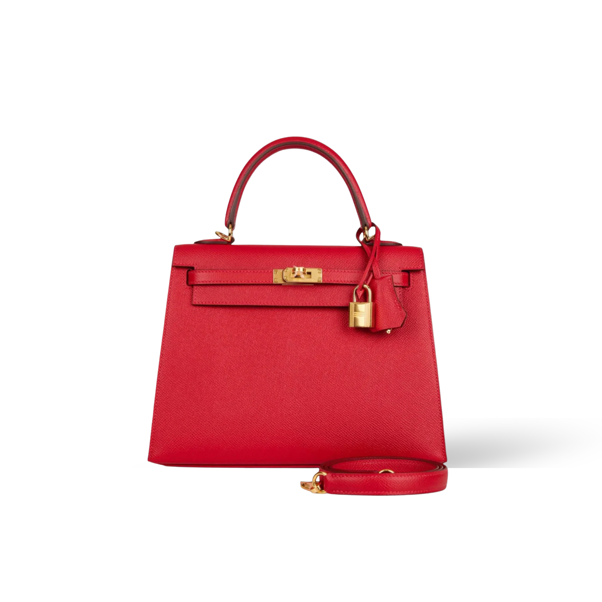 Hermes Kelly 25 Bag In Bright Red Epsom Leather For Women 25cm/10in