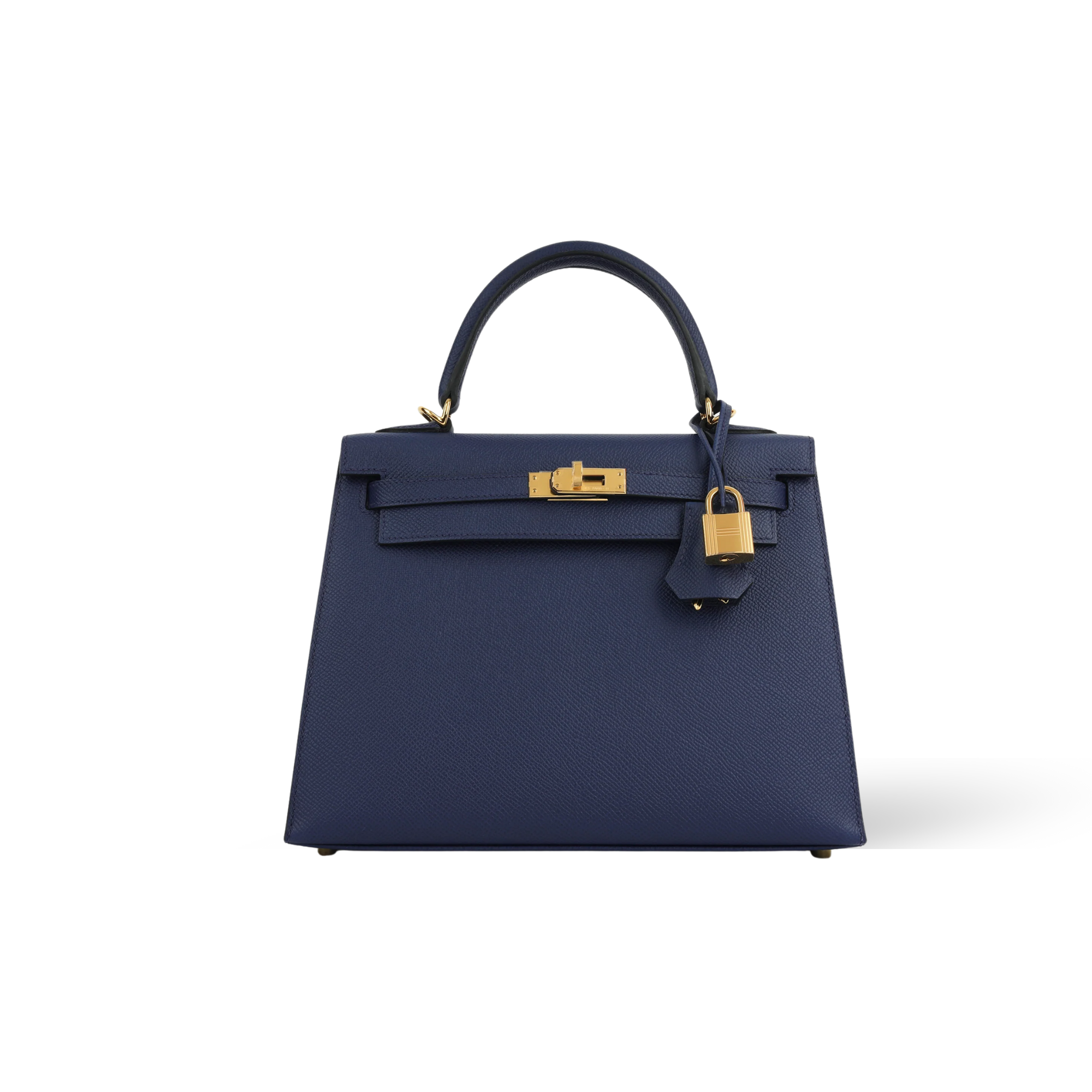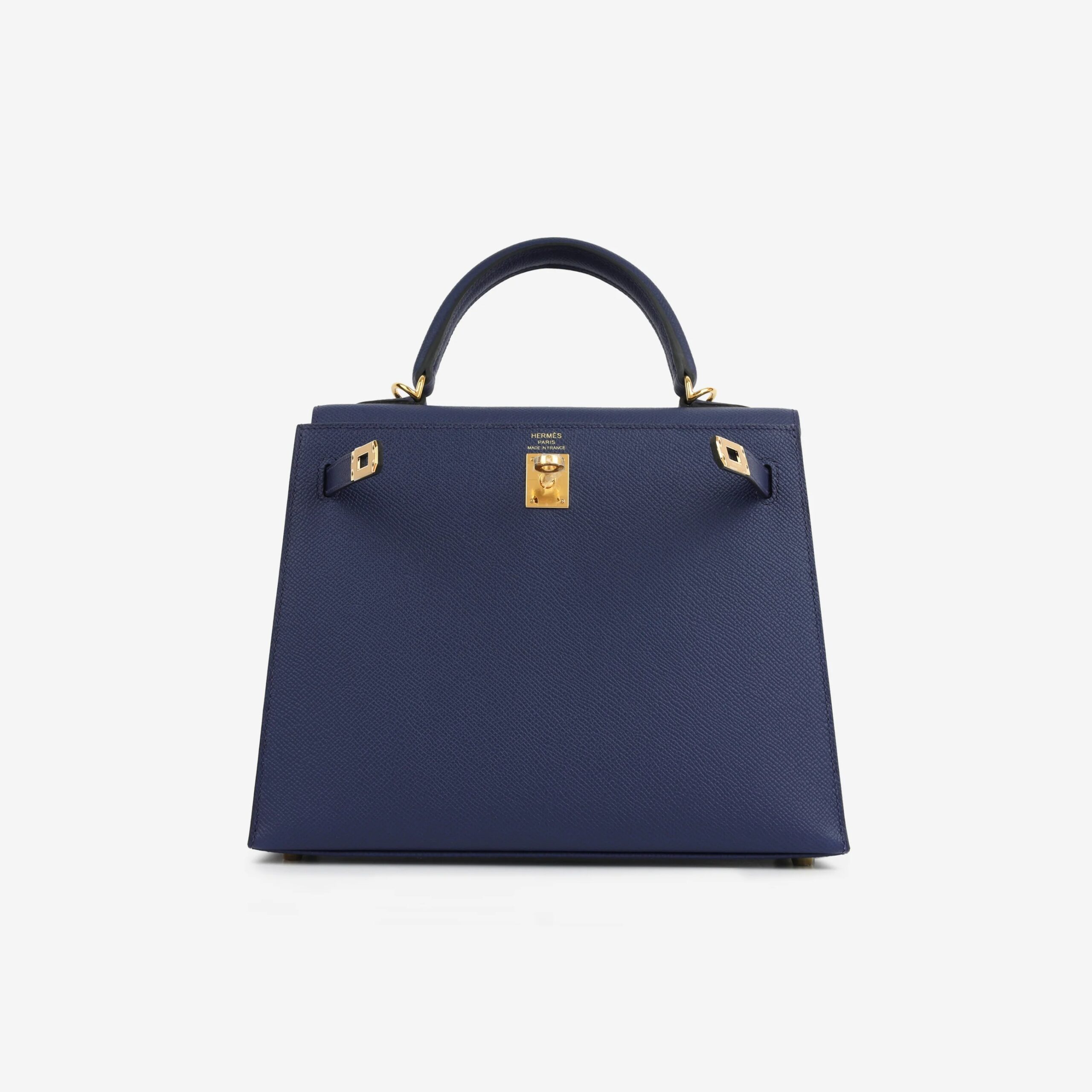 Hermes Kelly 25 Bag In Golden Bleu Navy Epsom Leather For Women 25cm/10in