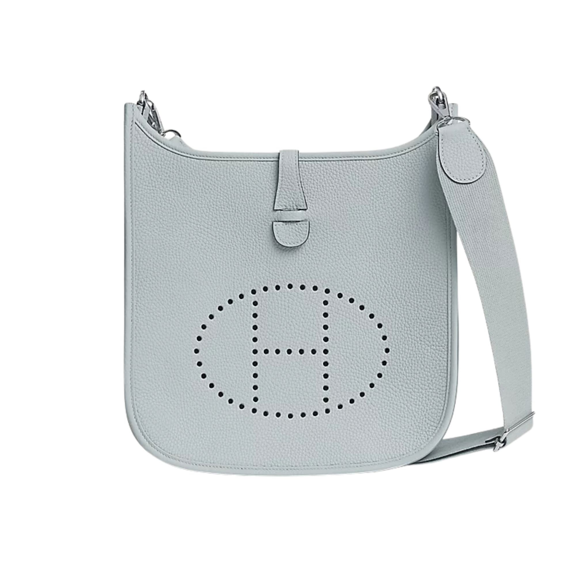 Hermès Evelyne III 29 Clemence Leather Bag Palladium Hardware Light Blue 29cm