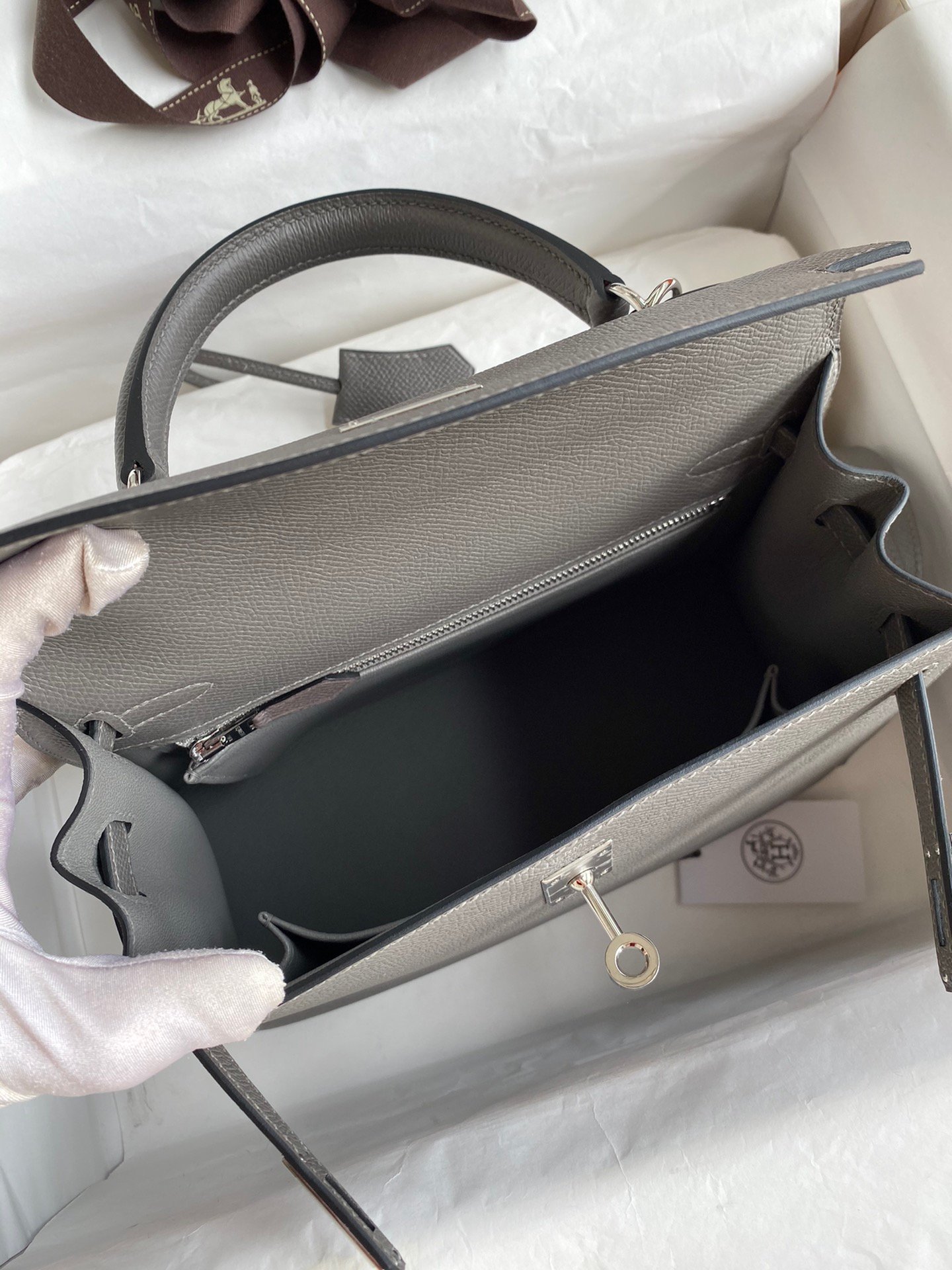 Hermes Kelly 25 Bag In Gris Perle Epsom Leather For Women 25cm/10in
