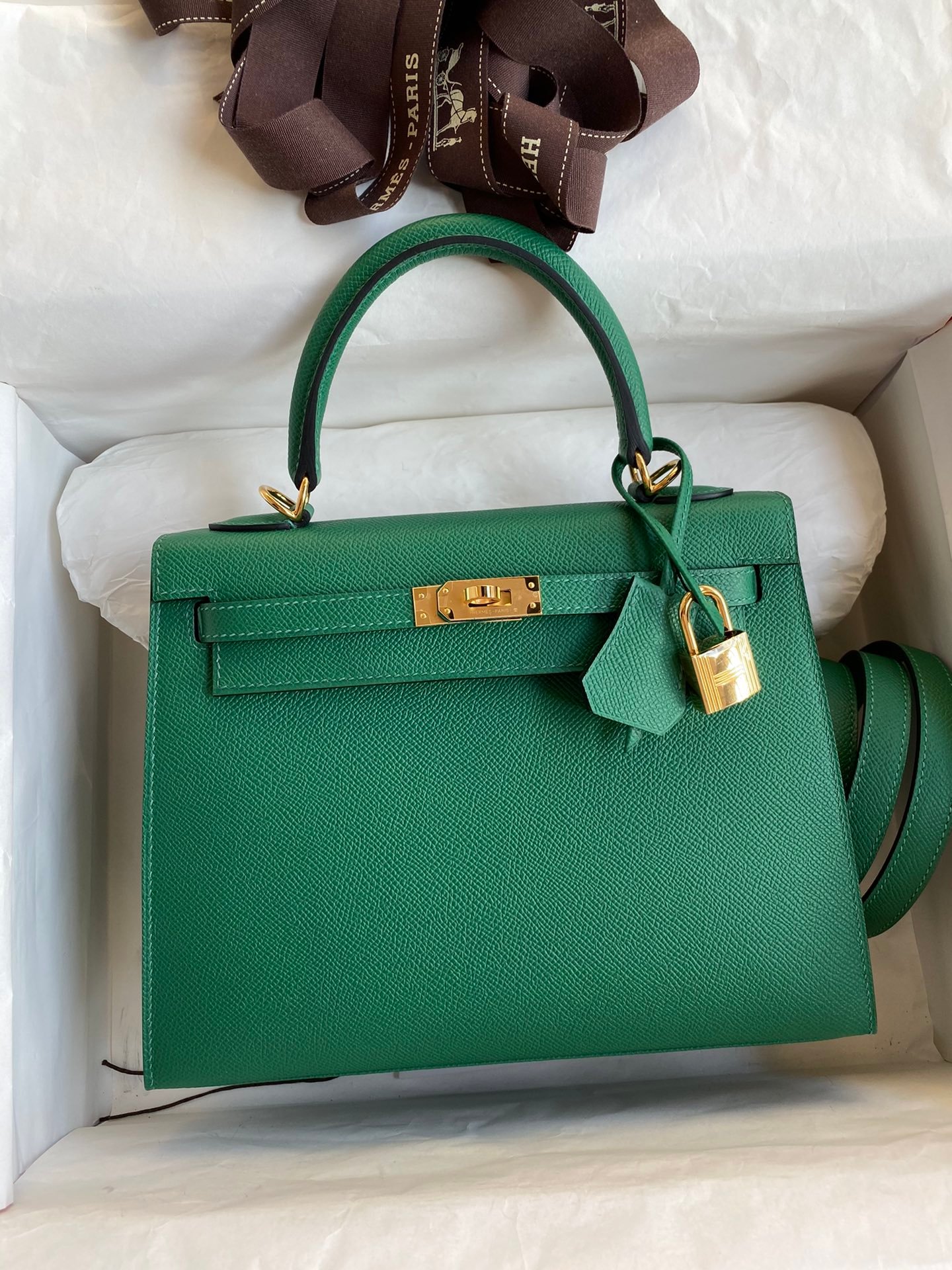 Hermes Kelly 25 Bag In Emerald Green Epsom Leather For Women 25cm/10in