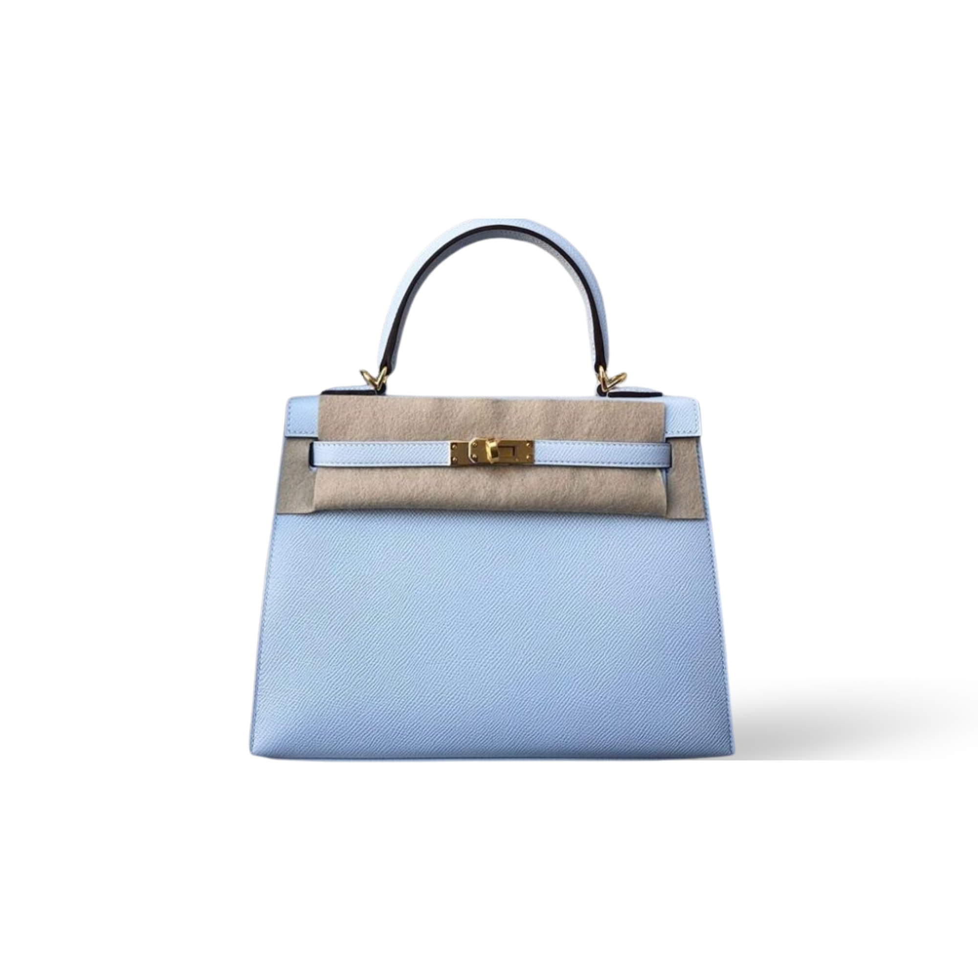 Hermes Kelly 25 Bag In Blue Celeste Gold Buckle Leather For Women 25cm/10in